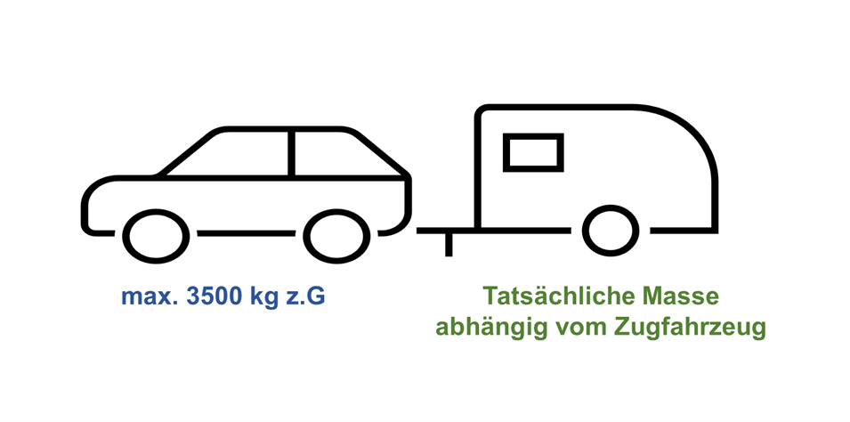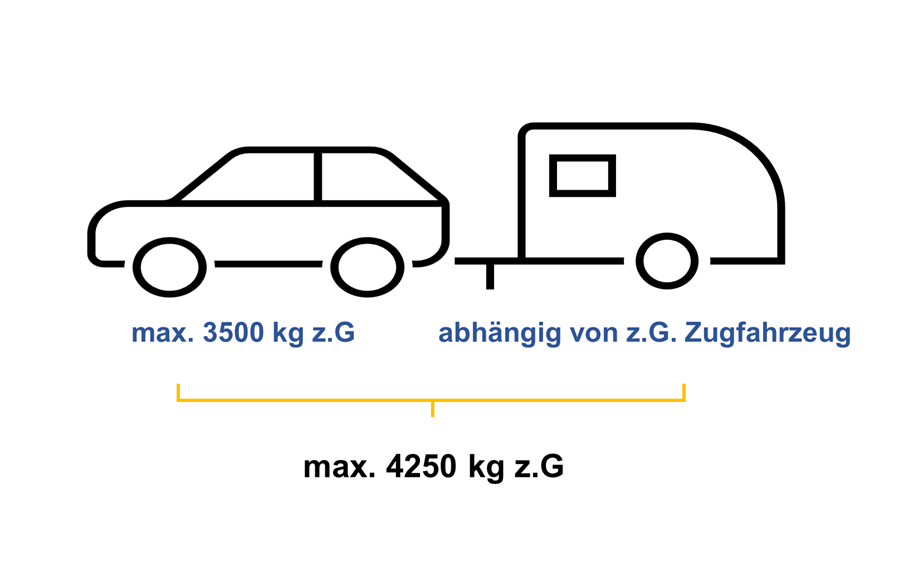 Aber: Anhänger mit einer zulässigen Gesamtmasse von maximal 750 Kilogramm dürfen immer gezogen werden. Dann darf die zulässige Gesamtmasse der Kombination demnach maximal 4.250 Kilogramm betragen.