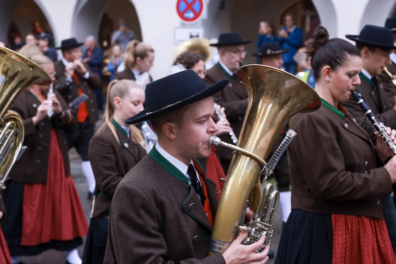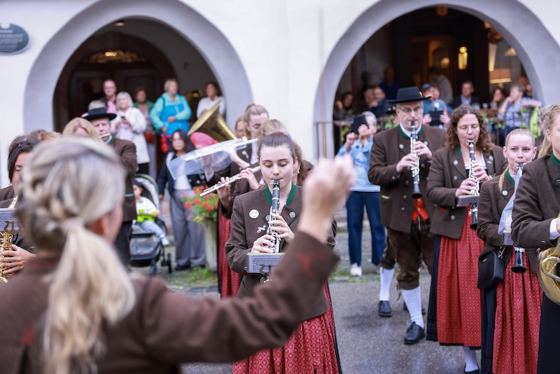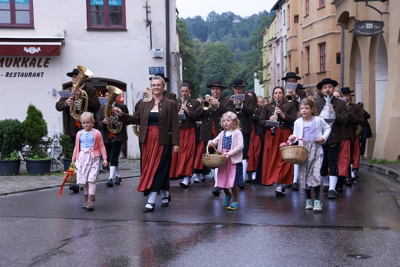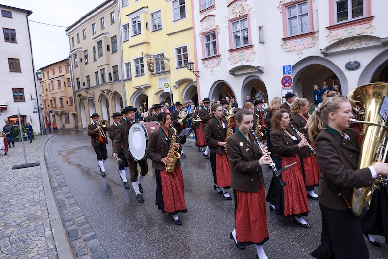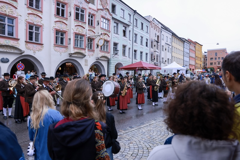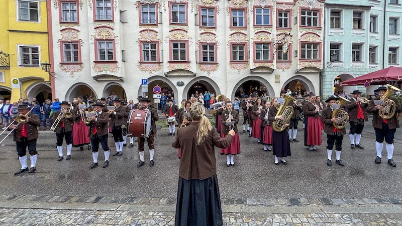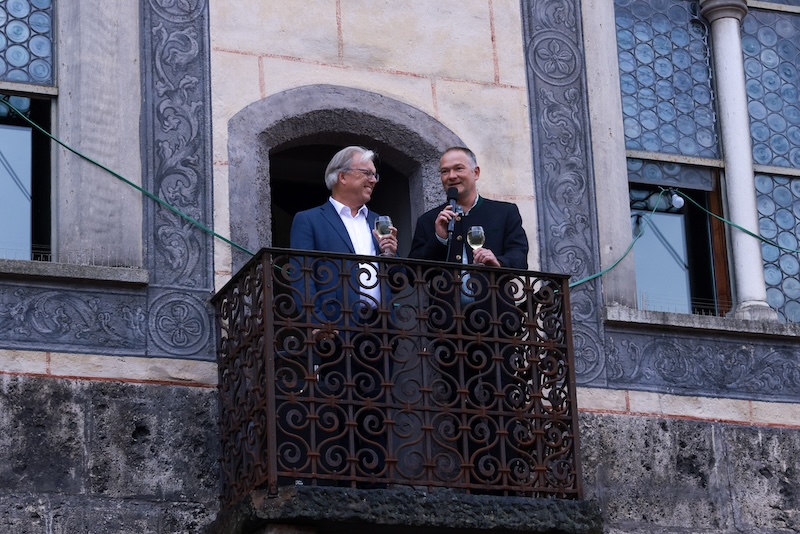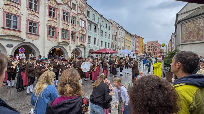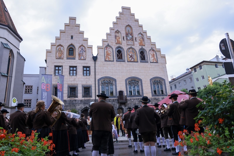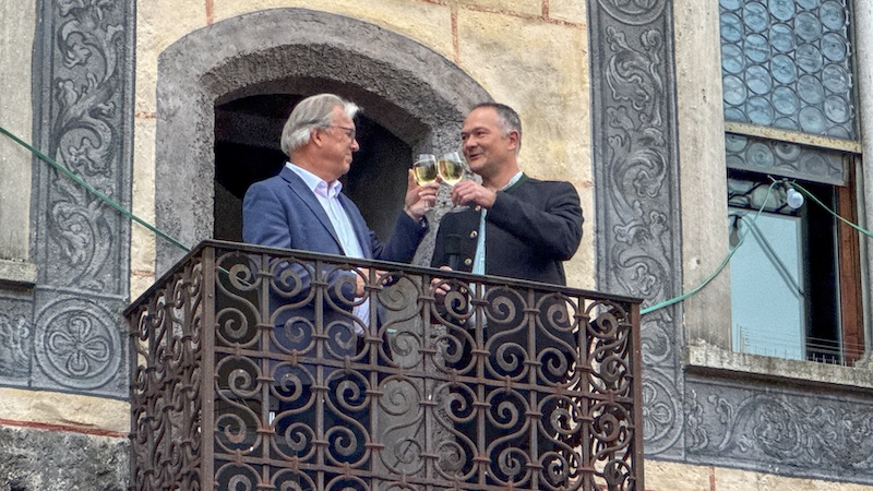 Wie immer eröffneten Bürgermeister Michael Kölbl und WFV-Vorsitzender Andreas Bonholzer auf dem Rathaus-Balkon das Wasserburger Weinfest und die Stadtkapelle spielte dazu auf.