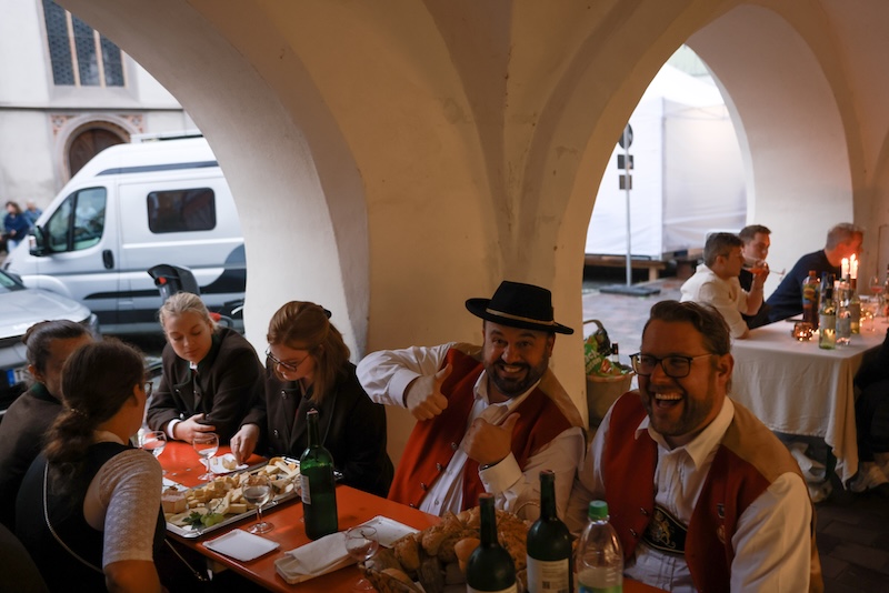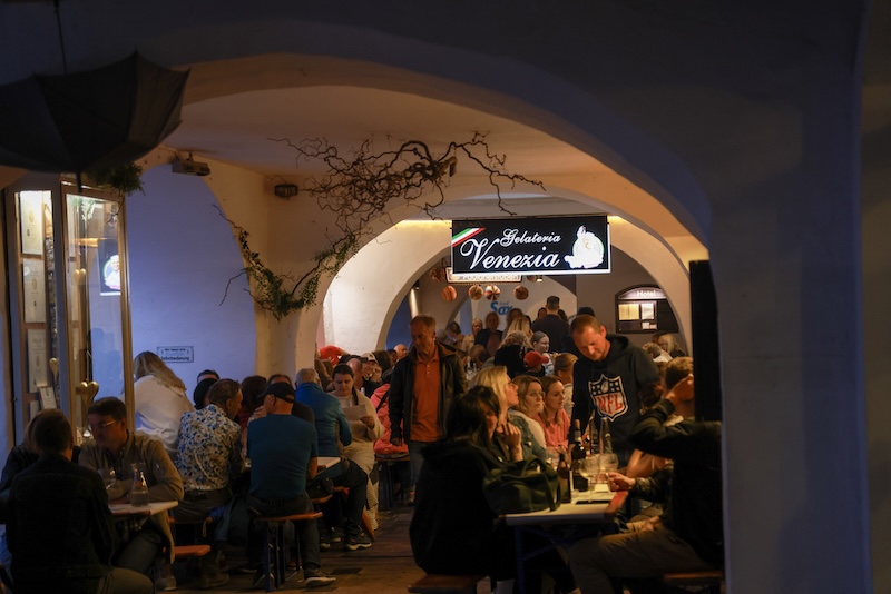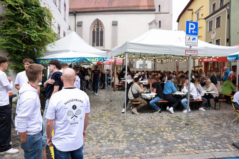 Pünktlich zum Start machte der Regen gestern eine Pause – das Wasserburger Weinfest war dennoch vom Wetter nicht gerade begünstigt. Den ganzen Abend gab es vereinzelte Schauer und auch die Temperaturen waren nicht gerade südländisch. Dennoch ließen sich die zahlreichen Gäste aus Nah und Fern die Stimmung nicht vermiesen. Unter Schirmen und Arkaden wurde der Abend trotz widriger Verhältnisse von allen genossen. Und die vier Bands in der Hofstatt, der Herrengasse, am Marienplatz und in der Lederererzeile taten ein Übriges. Unsere Fotos von gestern Abend: