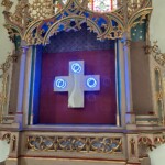 Und so blieb nur noch, auf die zahlreichen Ausstellungsorte hinzuweisen: Die Sonderausstellung in der St. Achatz-Kirche in der Achatzstraße: Dort haben die Künstler Tea Giobbio, Walter Vallini und Silvano Costanzo aus Turin Installationen geschaffen, die mit dem Kirchenbau eine letztlich widersprüchliche und doch harmonische Beziehung eingegangen sind.