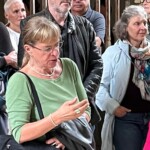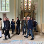 In der „Premiere“ zur Vernissage in der St. Achatzkirche, die kurz vor der Veranstaltung im Rathaus abgehalten wurde, hatte Katrin Meindl sich sehr glücklich und dankbar gezeigt, dass es der AK68 ist, der diese Kirche nach ihrer Restaurierung nutzen darf. Die Restauratorin der Achatzkirche, Petra Schwaerzel, und der Architekt der Restauration, Udo Rieger, erläuterten ein wenig die Geschichte dieser Restaurierungsarbeiten: Die Kirche sei im 15. Jahrhundert erbaut und sei im 19. Jahrhundert neu gestaltet worden. In den 70-er Jahren des 20. Jahrhunderts sei sie als Lagerhalle für das benachbarte Schülerheim genutzt worden und konnte dann seit 2015 komplett saniert werden. Nun erstrahle sie in neuem Glanze, der das historisch Überlieferte mit der Modernität der Kunst zu verbinden suche. Und man kann sagen, diese Verbindung ist den Verantwortlichen sehr gut gelungen.
