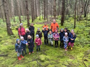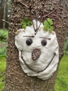 Die Kinder mussten Bäume blind ertasten und wiedererkennen, außerdem war es spannend, das Alter der Bäume zu schätzen. Einen Fuchsbau suchen, Zapfen-Ziel-Werfen und Balancieren waren die weiteren Aufgaben. Besonderen Spaß hatten die Buben und Mädchen daran, aus Mehlteig und verschiedenen Materialien aus dem Wald, lustige Baumgesichter zu gestalten.