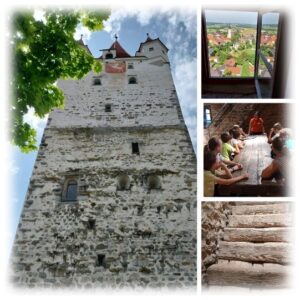 Beim Ferienprogramm im Haager Schlossturm besichtigen die Kinder bei einer Führung den Turm. Dabei genießen sie den Ausblick von ganz oben und malen anschließend an der Rittertafel den Turm, so, wie jeder mag. Die Bilder werden dann im Eingangsbereich aufgehängt.