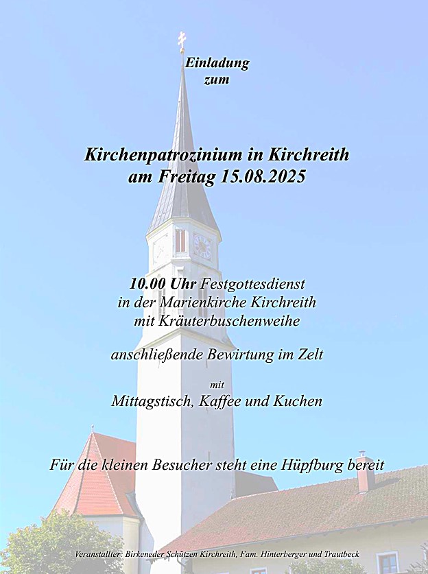 Zum Patrozinium Festgottesdienst in Kirchreit mit anschließendem Mittagstisch