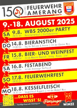 Gegründet 1875 im Gasthaus Rechl, zuständig da auch noch für Wasserburg, Griesstätt, Endorf, Kienberg und Schnaitsee und alarmierend per Kirchenglocken und Trompeten – ausrückend zu Fuß oder mit Pferdegespann: Ganz im Zeichen ihrer Feuerwehr steht die Gemeinde Amerang ab dem kommenden Donnerstag, 14. August:  Die Helfer in der Not feiern das 150-Jährige ihres Vereins, ein fester Bestandteil der Gemeinde Amerang seit eineinhalb Jahrhunderten.