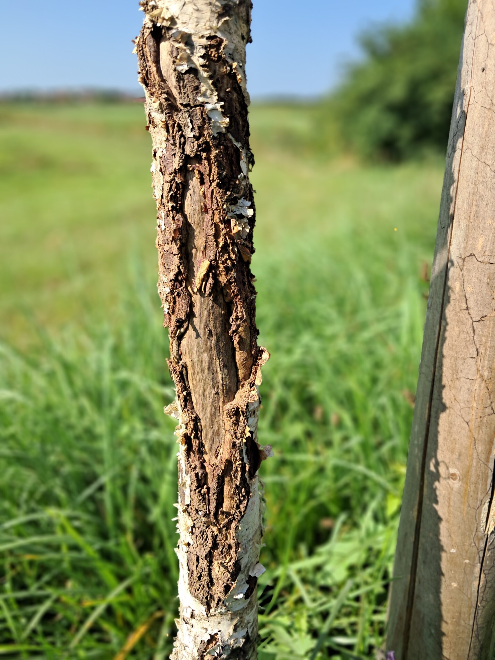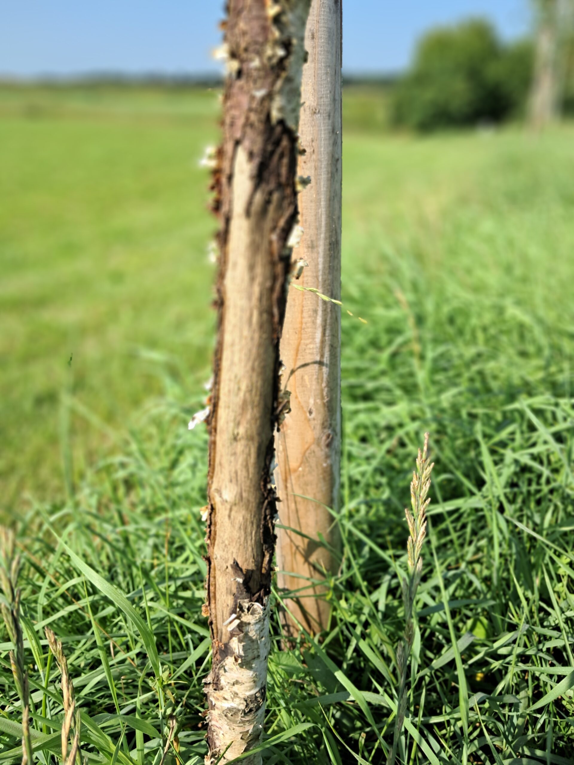 Sieht für mich aus, als wenn im Frühjahr ein Rehbock gewetzt hätte. Fegeschutz war scheinbar nicht vorhanden.
