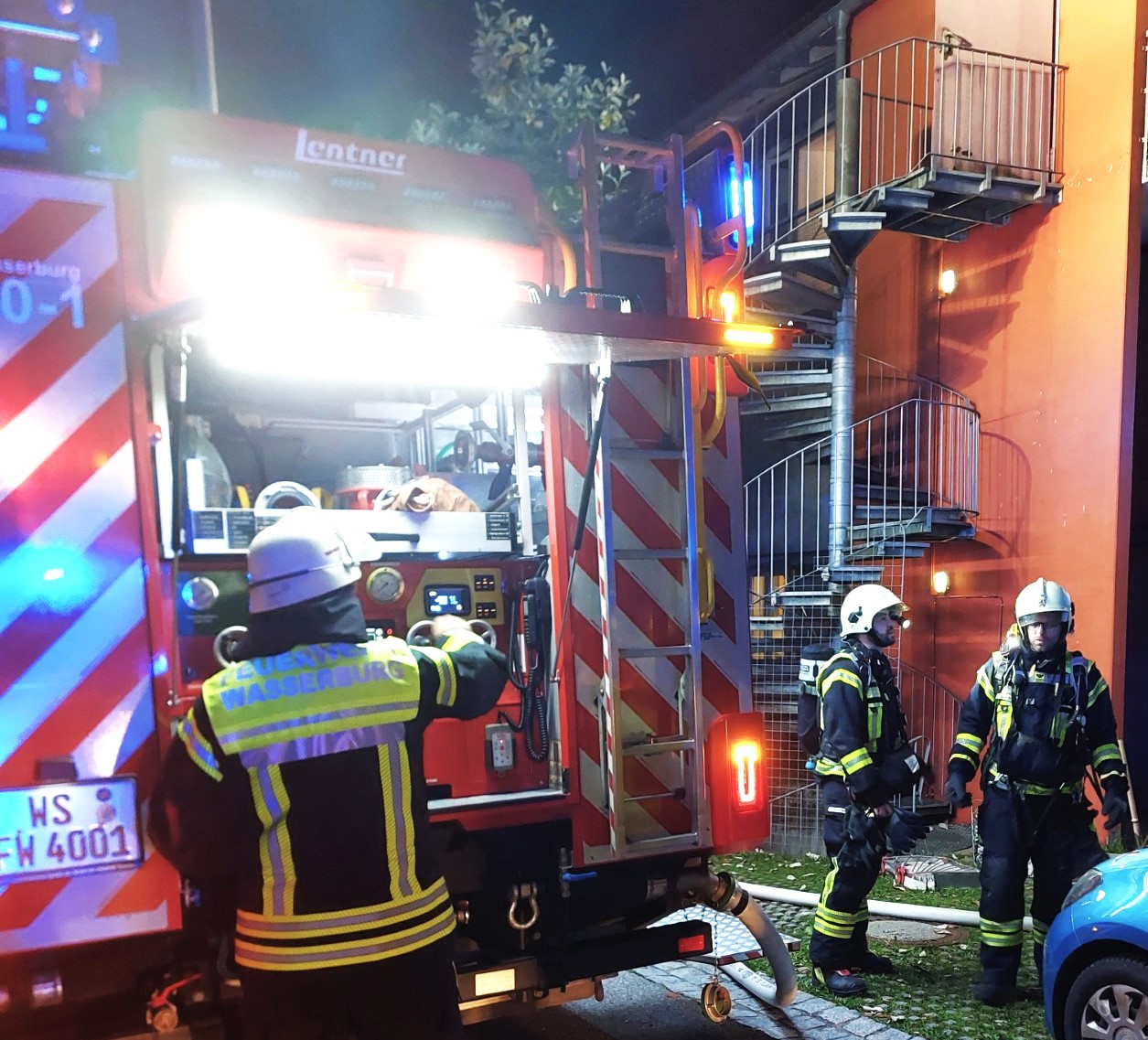 Gegen 22.15 Uhr wurden in Wasserburg zahlreiche Einsatzkräfte in den Ortsteil Burgau zu einem Brand gerufen. Besorgte Nachbarn hatten den Notruf gewählt, da in einer Wohnung mehrere Rauchmelder Alarm schlugen, aber niemand in der Wohnung öffnete.