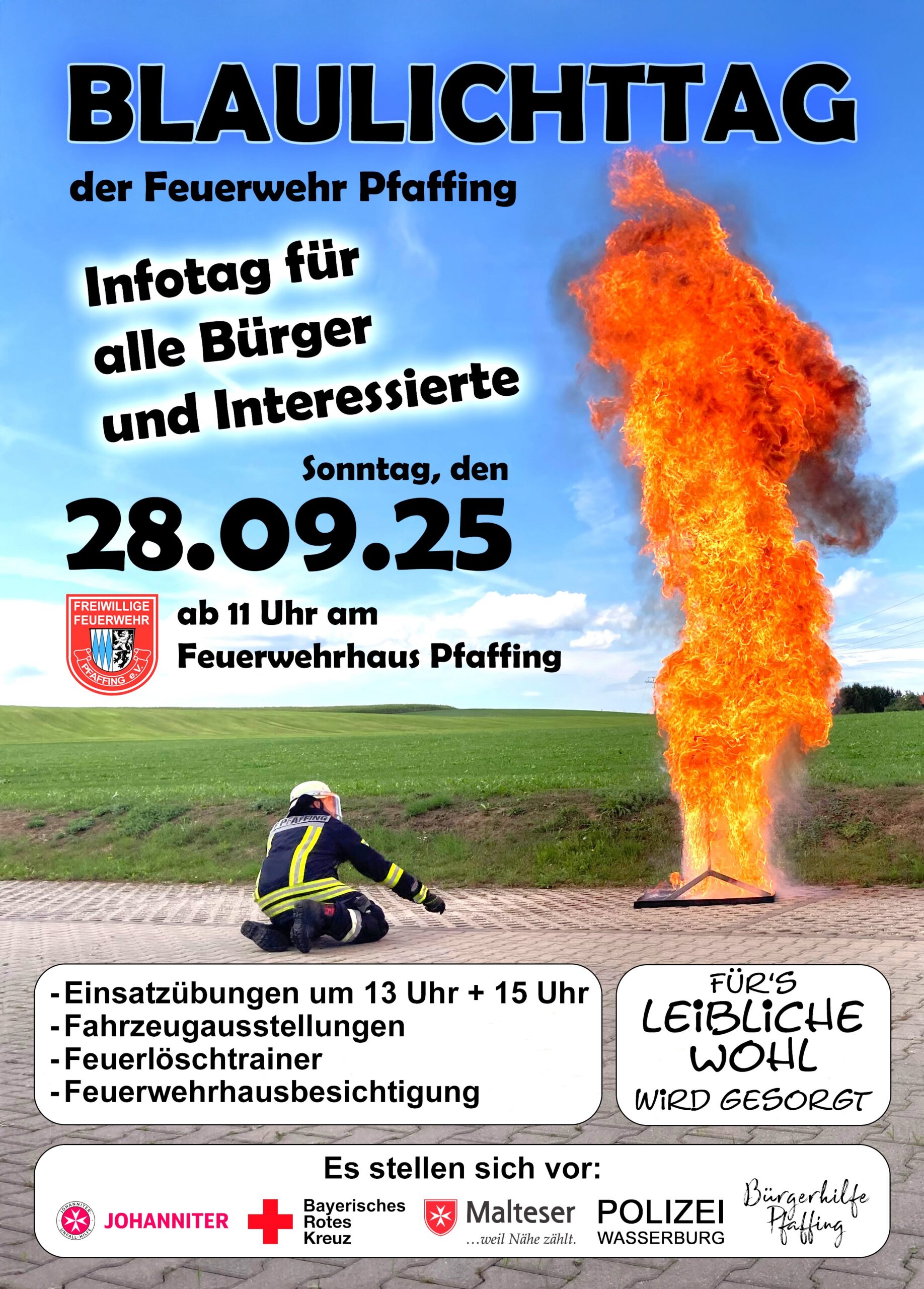 Vor Ort sind die Feuerwehr, Rettungsdienste von Johanniter, BRK und Malteser sowie die Polizei und auch die Pfaffinger Bürgerhilfe, um diese auch näher kennenzulernen und mehr über ihre tägliche Arbeit zu erfahren.