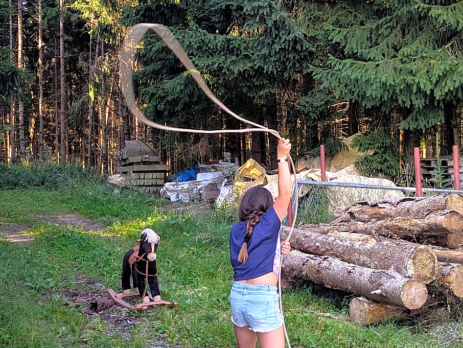 Ein Hindernis-Parcours, ein Geländeritt durch den Wald – aber auch Know-hows wie verschiedene Gangarten, die Fütterung der Pferde und sogar das Lassowerfen wurden erlernt und geübt. Es hat den Mädchen viel Spaß gemacht …