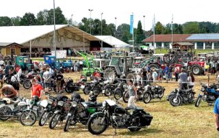Rollendes Museum auf dem Platz neben dem Bierzelt zum Feuerwehr-Jubiläum