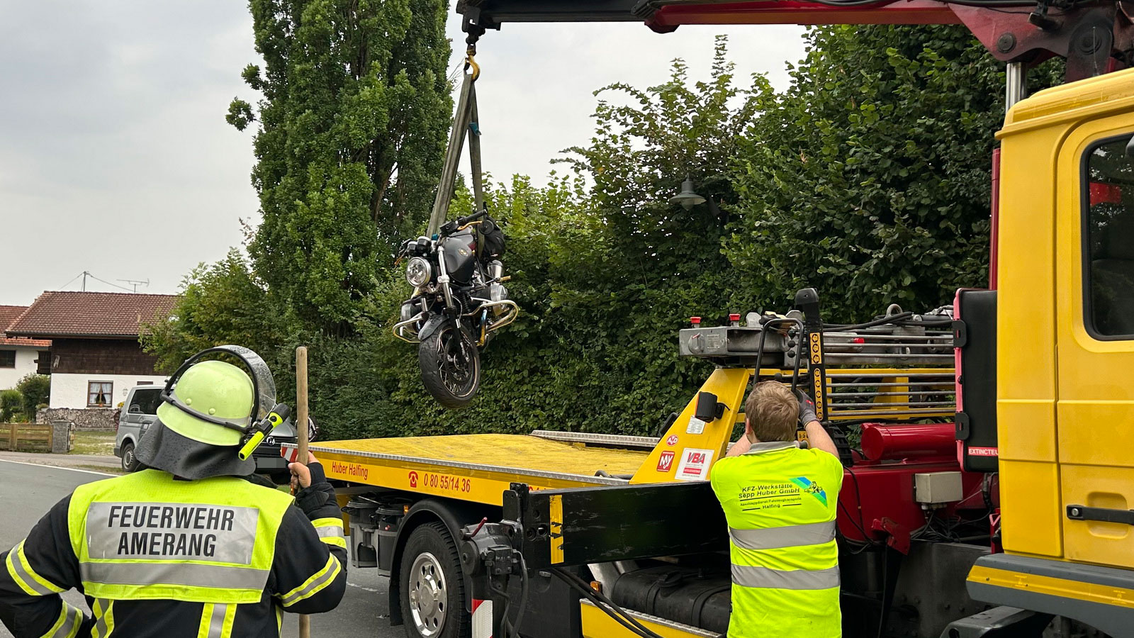 Alarm für die Rettungskräfte am Mittwochnachmittag: In Amerang hat sich gegen 16.15 Uhr auf der Wasserburger Straße ein schwerer Unfall ereignet. Ein Motorrad ist gegen einen Pkw geprallt. Der Rettungsdienst, der Notarzt und die Polizei sind ebenfalls an der Einsatzstelle. Der Motorradfahrer erlitt beim Aufprall so schwere Verletzungen, dass er nach der Erstversorgung vor Ort mit einem Rettungshubschrauber in ein Krankenhaus geflogen werden musste. Seine Mitfahrerin wurde vom Rettungsdienst betreut und ebenfalls zur weiteren Behandlung in eine Klinik gebracht.