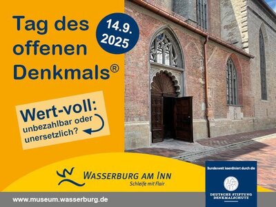 Willkommen bei Deutschlands größtem Kulturevent: Am 14. September ist wieder der „Tag des offenen Denkmals“, so auch in Wasserburg. Eintauchen in die Welt der Geschichte, durch geheimnisvolle Stätten, verwinkelte Häuser oder Kirchen sowie Museen wandeln. Sonst nicht zugängliche Orte entdecken: Das Motto 2025 lautet „Wert-voll: Unbezahlbar oder unersetzlich?“