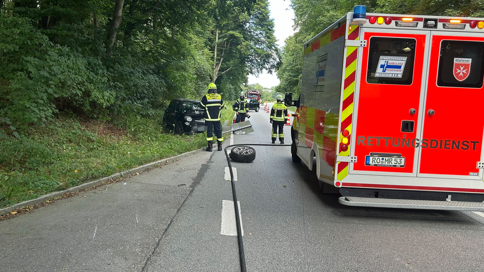 Feuerwehren Attel-Reitmehring und Ramerberg rückten auf die Bundesstraße zwischen Gabersee und Attel aus