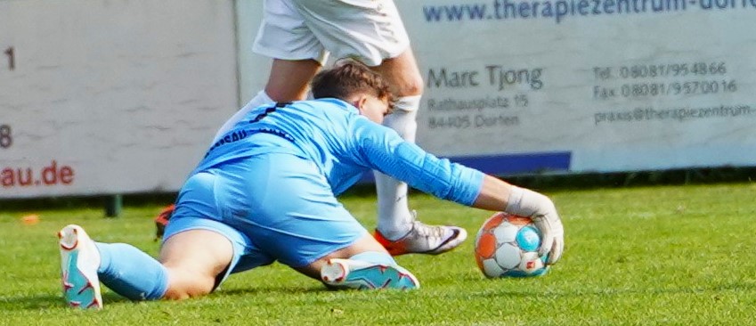 Beim Schuss von Tim Huber war der SG-Goalie zur Stelle (8.) und per Fußabwehr klärte er den Abschluss von Markus Hartl aus spitzem Winkel (17.) – sowie beim Versuch aus 18 Metern von Markus Hartl nur drei Minuten später war Elias Wagenspöck wieder zur Stelle und lenkte den Ball zur Ecke.