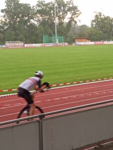 Nach 24 Stunden, teilweise im strömenden Regen, stand dann endlich die Schlussrunde an und beide Sportler stiegen glücklich, aber erschöpft, von ihren Einrädern – begeistert empfangen von ihrem Team, Angehörigen und den Zuschauern auf der Tribüne.