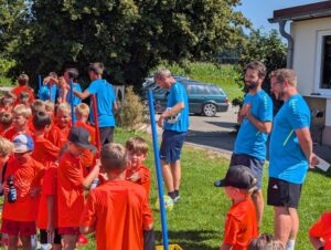 Der Startschuss fiel am Montag mit der Begrüßung der Teilnehmer. Ausgerüstet mit neuen Bällen, Trinkflaschen und Trikots ging es für die Kinder gruppenweise sofort mit den ersten beiden Trainingseinheiten los.