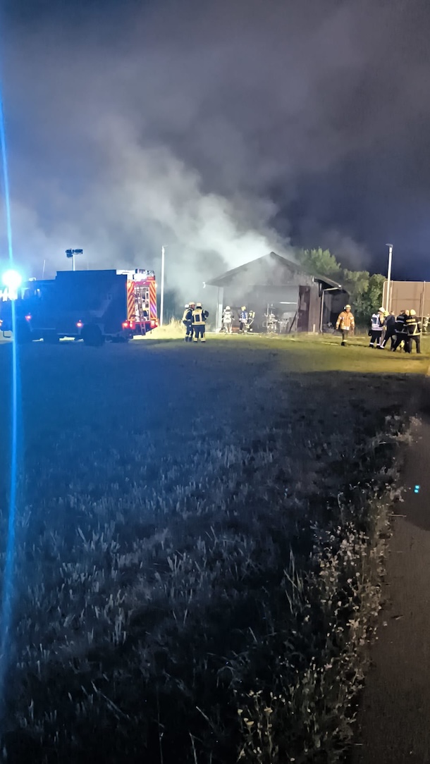 Nach derzeitigen Erkenntnissen waren auch Gerätschaften der Feuerwehr im Schuppen untergestellt und sie wurden durch die Flammen erheblich beschädigt. Der entstandene Gesamtsachschaden wird auf einen höheren, fünfstelligen Euro-Betrag geschätzt