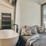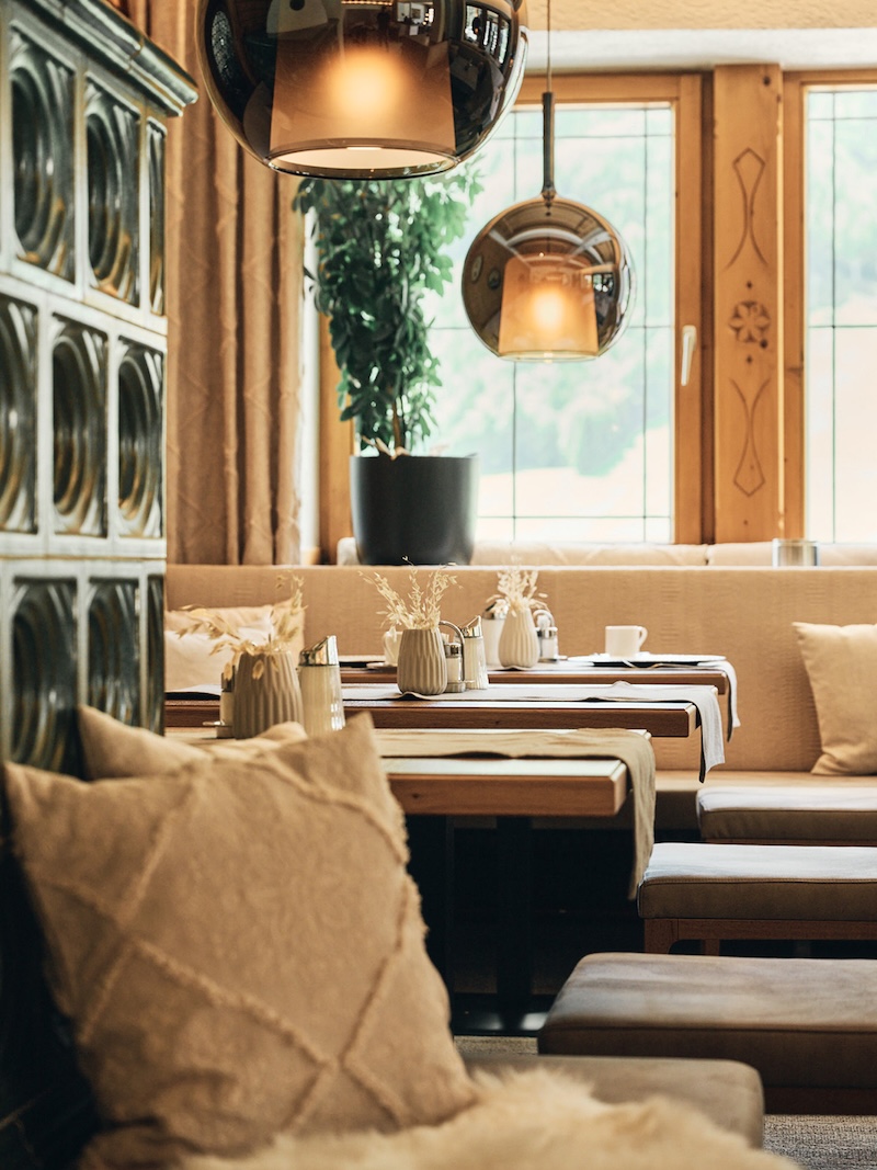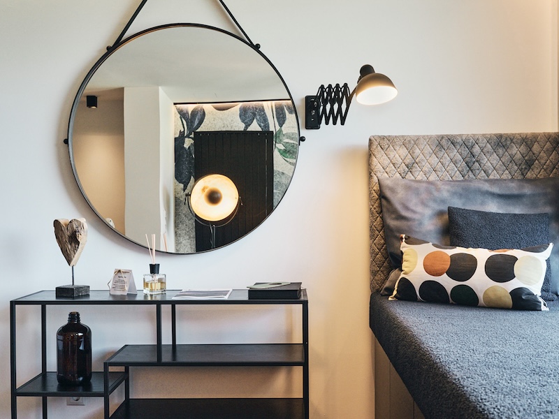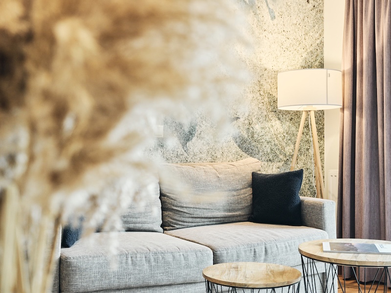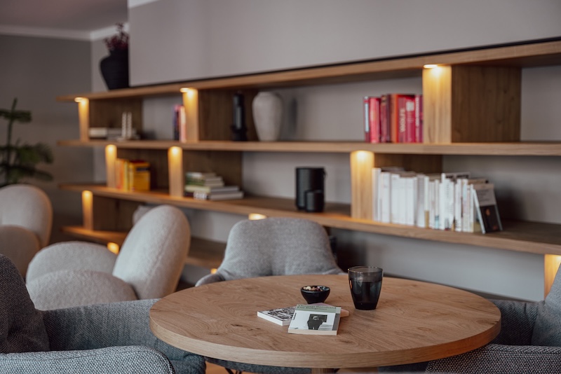 Die stilvollen Zimmer und Suiten mit überwältigendem Blick auf den See oder ins Karwendelgebirge überzeugen mit unaufdringlicher Eleganz und wertvollen Naturmaterialien. Im Herbst 2024 – mit einer Bauzeit von sportlichen zehn Wochen – wurden zehn Zimmer, eine Sky-Suite, die als neue vierte Etage in der Mitte des Gebäudes entstanden ist, sowie die Bibliothek einem Umbau unterzogen, wobei der Fokus auf einer natürlichen Materialwahl, der Vergrößerung der Fensterflächen und der Klimatisierung der Zimmer lag. Die Basis bilden Eichenholzböden und Materialien in sanften Sand und Brauntönen unterstrichen durch satte Olivtöne. Atmungsaktiver Kalkputz ergänzt den wärmenden Touch der Räume.