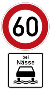 Unser Tipp: Besondere Geschwindigkeitsbegrenzungen bei Nässe werden aus einem bestimmten Grund angebracht – beispielsweise, weil sich in Spurrillen Wasser ansammelt und zum sogenannten Aquaplaning führen kann, oder weil der Fahrbahnbelag bei Nässe rutschig wird. Deshalb sollten Sie sich zum eigenen sowie zum Schutz der anderen an die Begrenzungen halten.