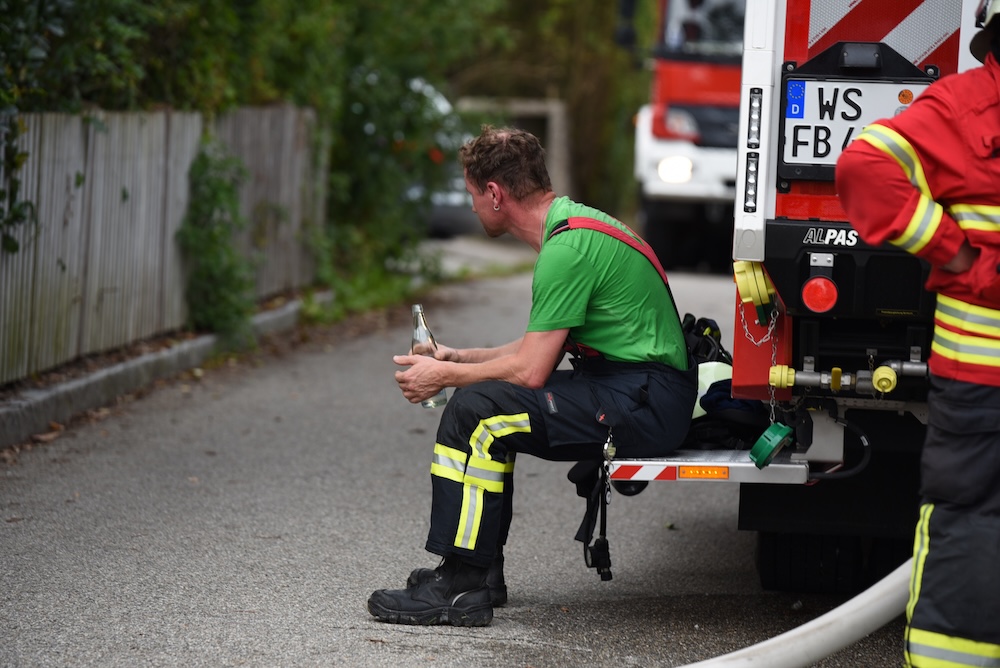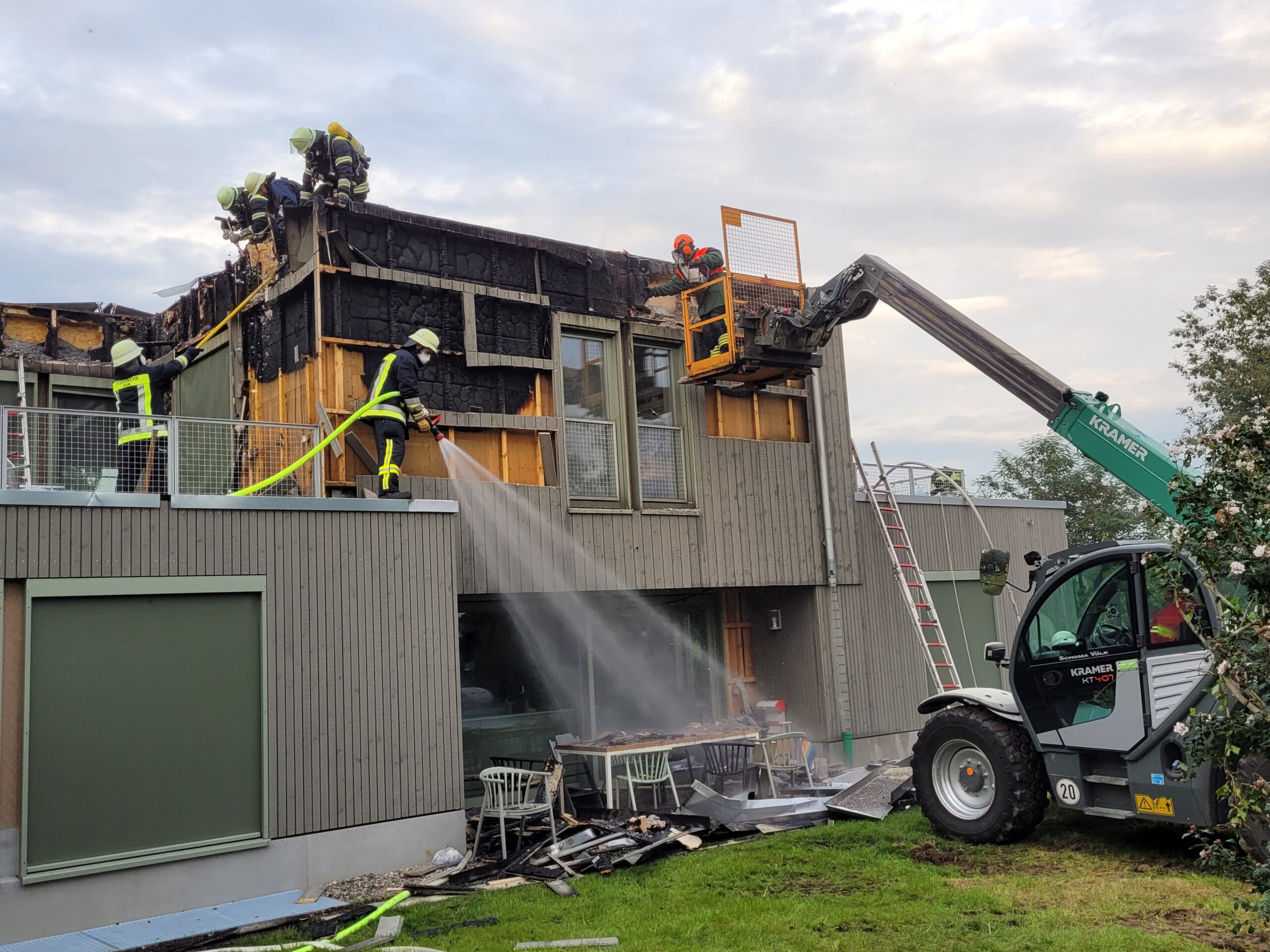 „Wir wissen noch nicht, welche Dämm-Materialien beim Bau verwendet wurden“, sagte Kreisbrandinspektor Stephan Hangl gegenüber der Wasserburger Stimme. „Das Feuer kann theoretisch jederzeit wieder aufflammen. Wir müssen vermutlich das gesamte Dach öffnen. Vorsichtshalber.“