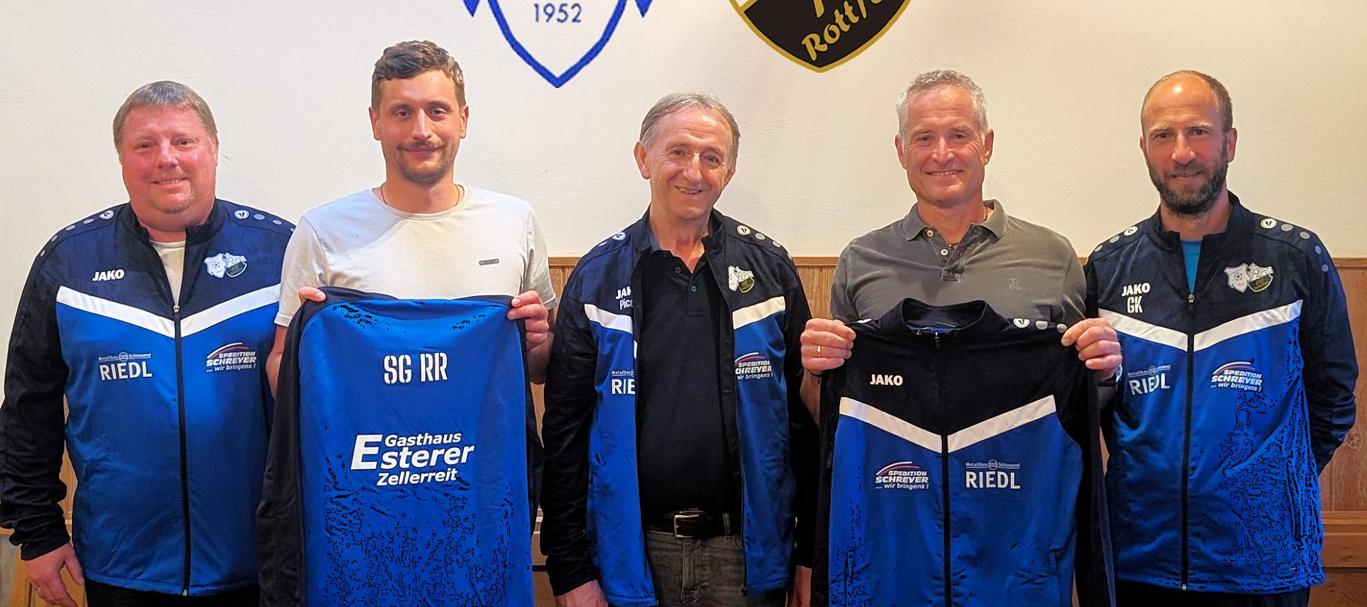 Die neu gegründete Fußball-Spielgemeinschaft Rott-Ramerberg (wir berichteten) freut sich zum Start über eine großzügige Unterstützung von gleich drei Sponsoren – dem Gasthaus Esterer in Zellerreit, der Spedition Schreyer aus Rott und der Firma Metallbau Riedl aus Rott.