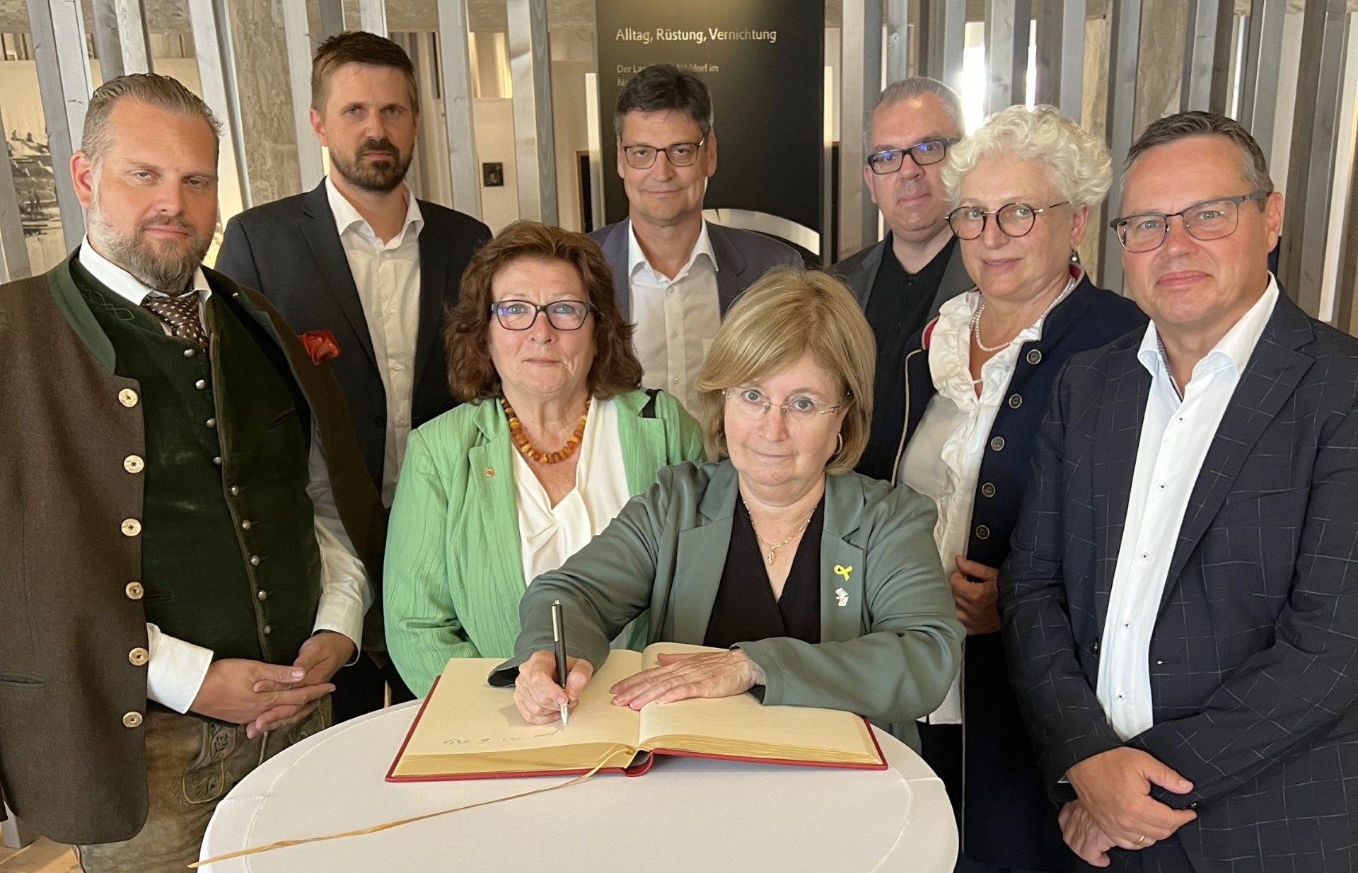 Zum Auftakt führte Korbinian Engelmann, Leiter des Geschichtszentrums und Museums Mühldorf, die Generalkonsulin durch die Dauerausstellung „Alltag, Rüstung, Vernichtung – der Landkreis Mühldorf im Nationalsozialismus“, die unter anderem die Geschichte der ehemaligen KZ-Außenlager im Landkreis Mühldorf thematisiert.