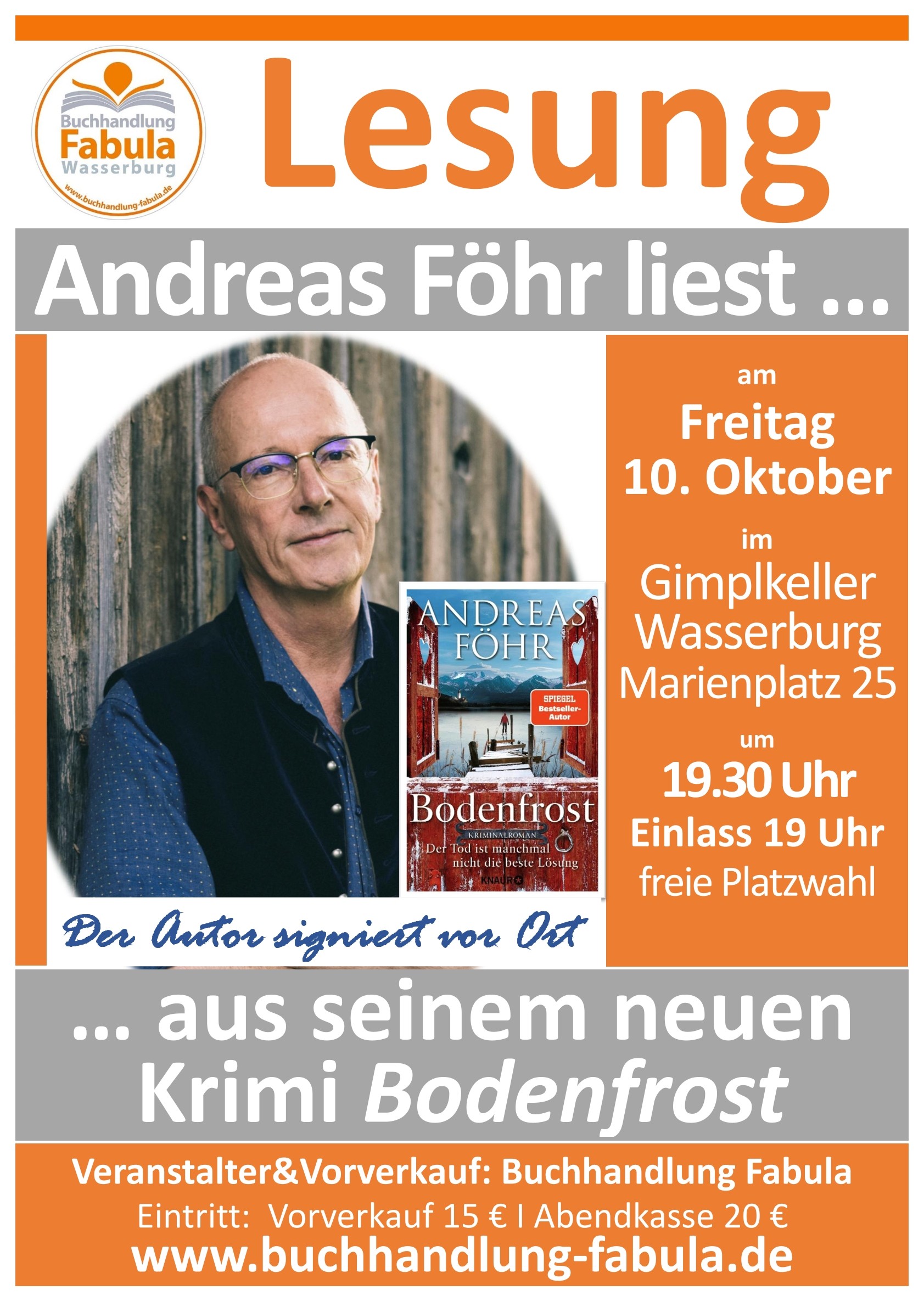 Andreas Föhr liest aus seinem neuen Buch „Bodenfrost“ in Wasserburg – und zwar am Freitag, 10. Oktober, im Gimplkeller. Veranstaltet von der Buchhandlung Fabula …