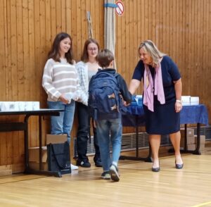 Danach wurden die Kinder vom stellvertretenden Schulleiter, Manfred Strobl, in vier Klassen aufgeteilt. Als kleines Geschenk erhielt jeder Schüler eine Tasse mit einem gemalten Bild der Schule. „Damit ihr euch von Anfang an mit der Schule verbunden fühlt“, so Tanja Oberhofer, die anschließend jeden Schüler persönlich begrüßte und allen viel Freude und Erfolg an der Schule wünschte.
