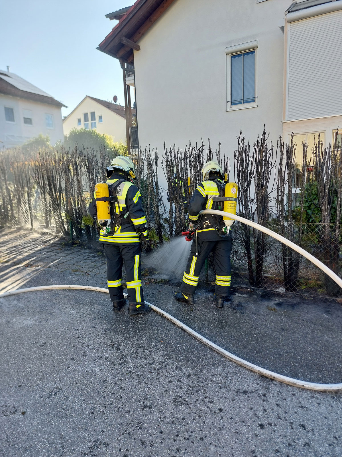 Am Donnerstag kam es gegen 16:50 Uhr zu mehreren Notrufmitteilungen über einem Heckenbrand im Stadtgebiet Wasserburg. Daraufhin wurden die umliegenden Feuerwehren sowie eine Streife der Polizeiinspektion Wasserburg zum Einsatzort geschickt. Bei Eintreffen der Beamten stand eine zirka 15 Meter lange Hecke in Flammen. Diese brannte völlig nieder. Zum Zeitpunkt des Brandes stand ein Wohnmobil unmittelbar neben dem Brandherd. Aufgrund der Hitzeeinwirkung wurde das Wohnmobil leicht beschädigt. Der Gesamtschaden beläuft sich auf zirka 2.500 Euro. Die Feuerwehren Wasserburg sowie Attel-Reitmehring waren mit mehreren Fahrzeugen und Einsatzkräften vor Ort. Durch den Brand wurde niemand verletzt.