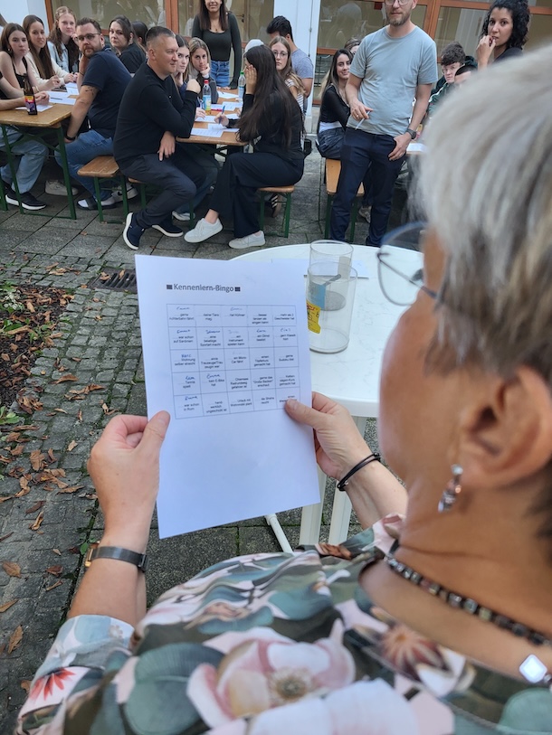 Das gemeinsame Abendessen mit Nachwuchskräften, Dozenten und Mitarbeitenden war eine gute Gelegenheit für nette Gespräche und gemütliches Zusammensein. Das „Kennenlern-Bingo“ regte dazu an, mit möglichst vielen Personen Kontakt aufzunehmen, um schnell herauszufinden, wer Hühner zu Hause hat, gerne mit dem Wohnmobil Urlaub macht oder mindestens zwei Fremdsprachen beherrscht. Für die ersten „Bingo“ -Rufe gab es Wasserburg-Gutscheine zu gewinnen.