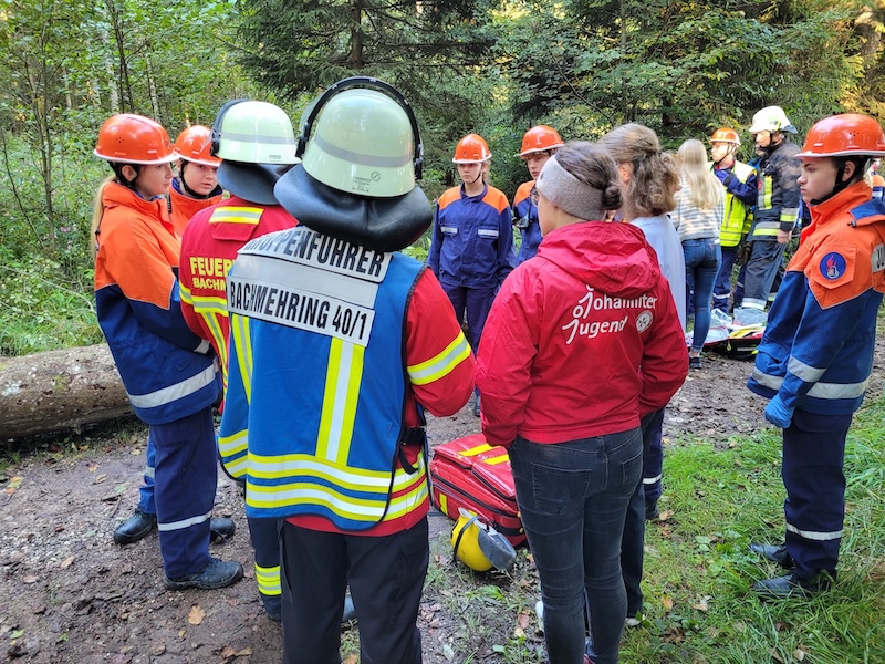 Es folgten die nächtliche Suche einer vermissten Person in einem Waldstück und eine ausgelöste Brandmeldeanlage im Eiselfinger Rathaus. Außerdem musste ein Handwerker aus einer Baugrube neben dem Schulhaus gerettet werden und bei Alteiselfing forderte ein Forstunfall die schnelle Rettung einer eingeklemmten Person. Hier trafen die Jugendfeuerwehrler mit der Wasserburger Johanniter-Jugend zusammen und bewältigten das anspruchsvolle Szenario gleich noch mit professioneller medizinischer Notfallversorgung.