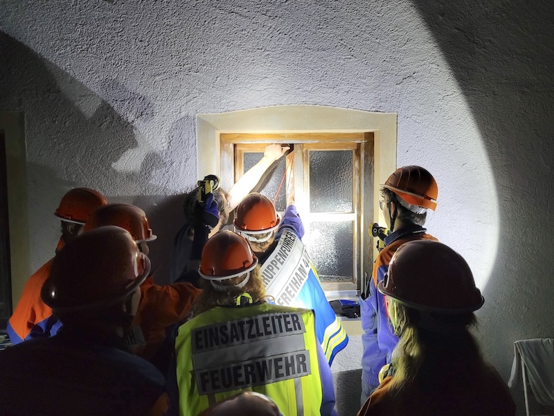 Ausgehend vom gemeinsamen Stützpunkt am Gerätehaus in Eiselfing erwarteten die Feuerwehranwärter vom Freitag- bis zum Samstagnachmittag mehrere spannende Übungseinsätze. Los ging es mit einem großen Feuer und meterhohen Flammen auf einem Lagerplatz, die gelöscht werden mussten. Nach dem gemeinsamen Abendessen lautete die Alarmmeldung: „Dringende Wohnungsöffnung, Person in Notlage.“ Am Einsatzort angekommen, staunten die Nachwuchsretter dann nicht schlecht. Warteten vor dem Gebäude doch drei Beamte der Polizeiinspektion Wasserburg am Inn, um das Szenario gemeinsam mit den Jugendlichen zu bewältigen und dabei aus ihrem Berufsalltag über die wichtige Zusammenarbeit mit den heimischen Feuerwehren zu berichten.