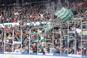 Fortan ging es hin und her. Nachdem die Starbulls bei einem über Charlie Sarault und Lukas Laub gefahrenen Konter den dritten Führungstreffer versäumten, trafen die Gäste zum 2:3. Trevor Gooch schnappte sich in der neutralen Zone die Scheibe, düpierte die Rosenheimer Abwehr mit einer feinen Finte und schloss die Einzelleistung mit einem präzisen Abschluss ins linke Eck ab (54.). Die selbstbewusst auftretenden Grün-Weißen fanden aber auch auf diesen Rückschlag eine rasche Antwort. Zerter-Gossage eroberte hinter der Grundlinie den Puck und legte zurück auf Dylan Plouffe, der sofort abzog. Sarault irritierte Keeper Langmann und Lukas Laub staubte ab – 3:3 (56.).