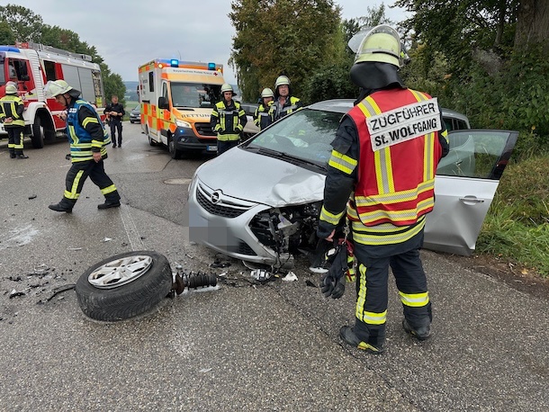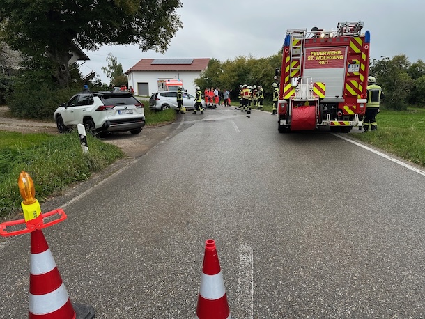 Alarm für die Feuerwehren St. Wolfgang und Haag: Am Montagmittag rückten die Floriansjünger nach Wernhardsberg auf die Kreisstraße ED21 auf. Dort sind zwei Pkw frontal zusammengeprallt. Es gab Verletzte. Die Unfallursache ist noch unklar. Polizeibericht folgt. Foto: Georg Barth