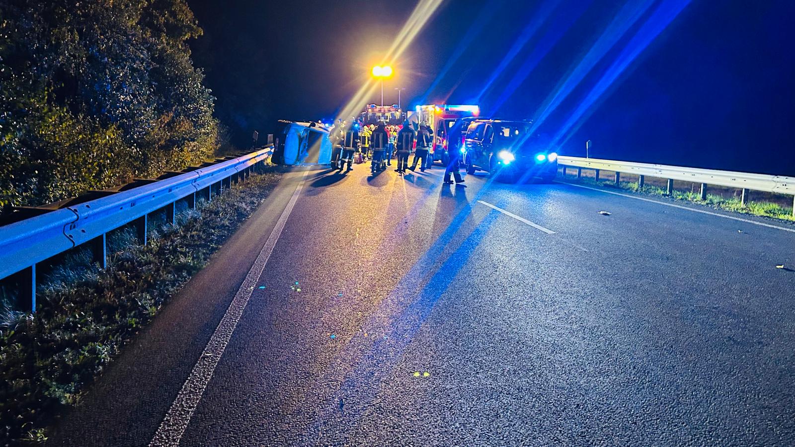 Die B304 musste zeitweise zur Unfallaufnahme und Bergung des Fahrzeugs komplett gesperrt werden.