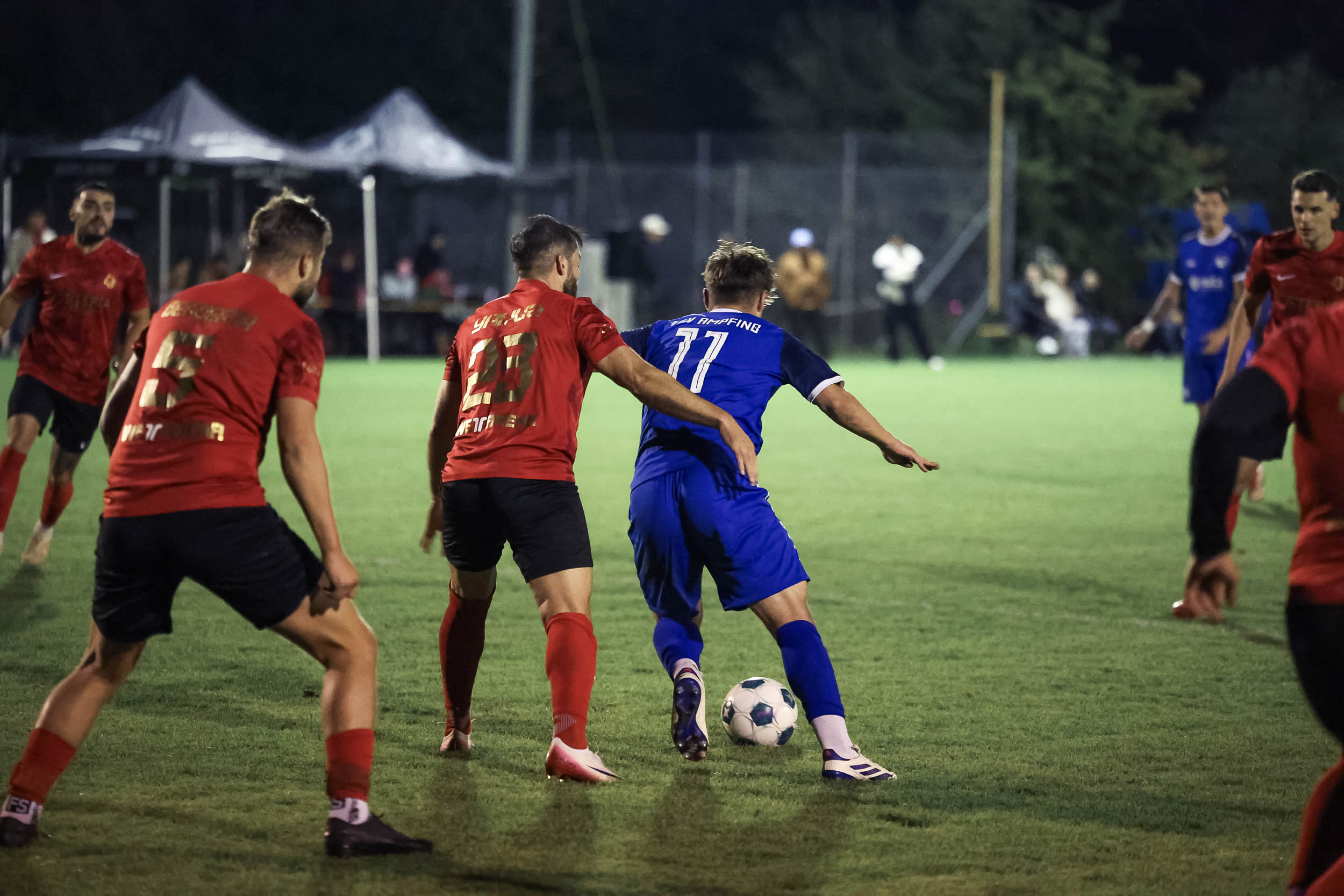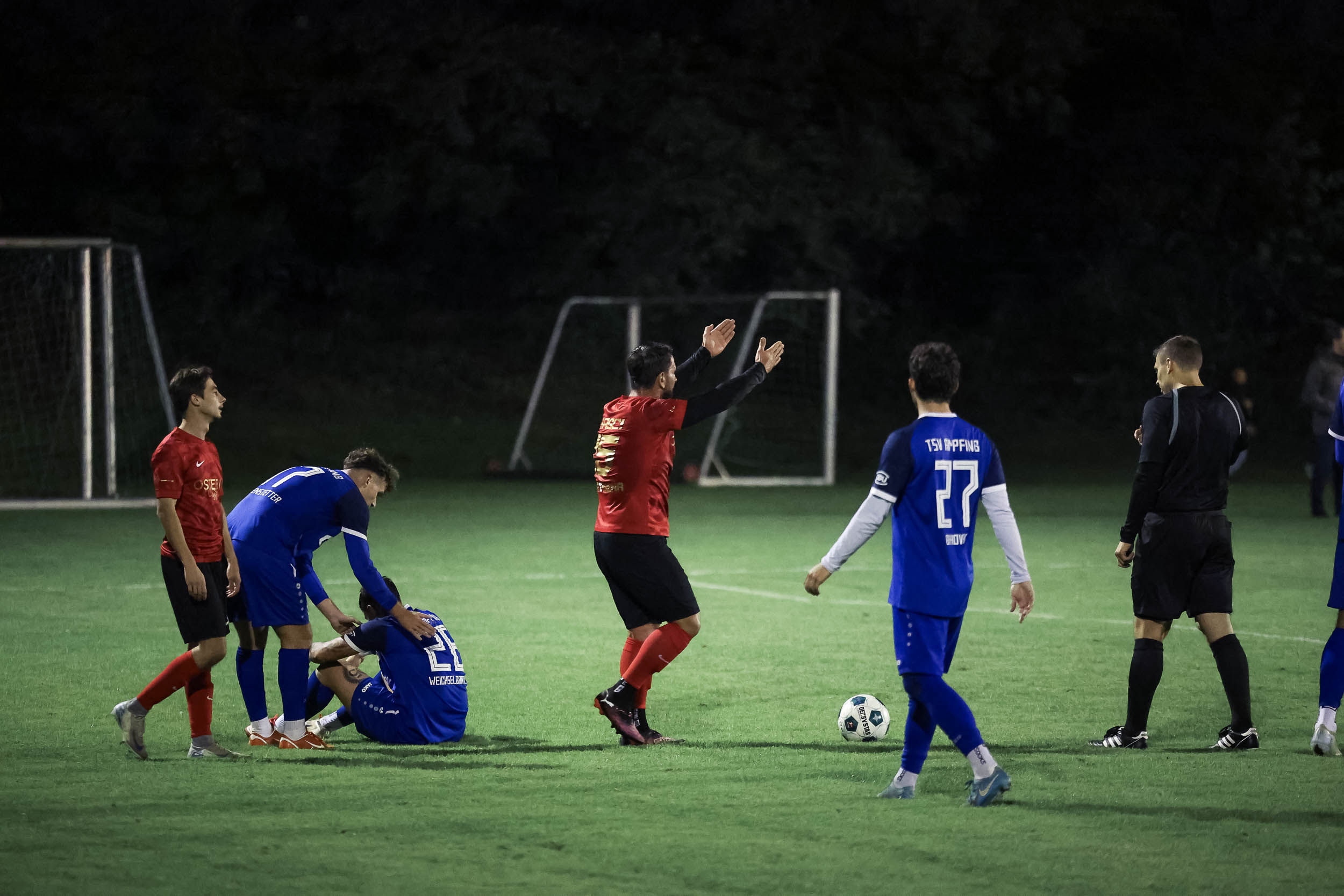 Kurz vor der Pause kam es zu einer hitzigen Situation. Nach einem harmlosen Foul an der Mittellinie entfachte eine Rudelbildung. Wasserburgs Florent Syla schubste einen Edlinger Spieler vor den Augen des Unparteiischen und sah dafür die Rote Karte. Trotz Unterzahl schafften es die Wölfe, die Partie zu kontrollieren und gingen mit einer komfortablen 2:0-Führung in die Halbzeit.