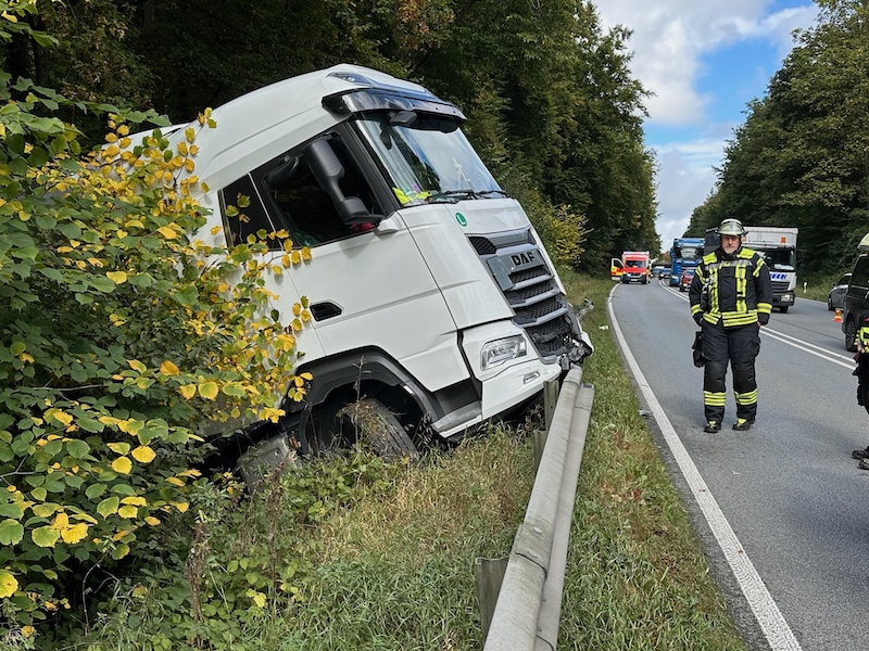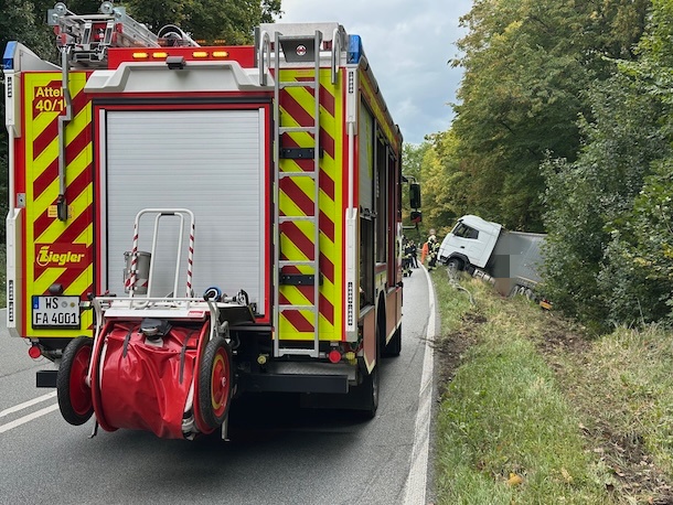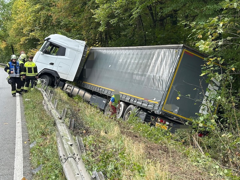 Lkw kracht am Attler Berg durch Leitplanke - Feuerwehr Attel-Reitmehring im Einsatz