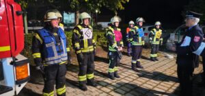 Im Anschluss stand die Einsatzübung an. Hierbei muss innerhalb von 190 Sekunden ein kompletter Löschangriff aufgebaut werden. Dazu gehören die Verkehrsabsicherung, das Setzen eines Unterflurhydranten und natürlich der Löschangriff mit drei Strahlrohren.