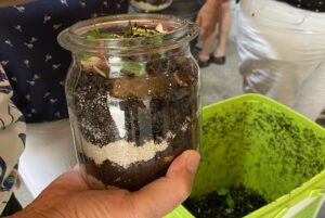 Nach einem kurzen Vortrag über die Bedeutung lebendiger Böden von Kreisfachberaterin Susanne Summerer erhielten die Teilnehmenden anschauliche Einblicke in die Lebensweise der wirbellosen Tiere. Kreisjugendsprecherinnen Andrea Gratze und Margarete Bernrieder demonstrierten, wie ein „Wurmglas“ oder eine „Wurmfarm“ funktioniert. Anschließend konnten die Teilnehmenden selbst tätig werden und ihre eigenen Anschauungsobjekte gestalten und mit nach Hause nehmen.
