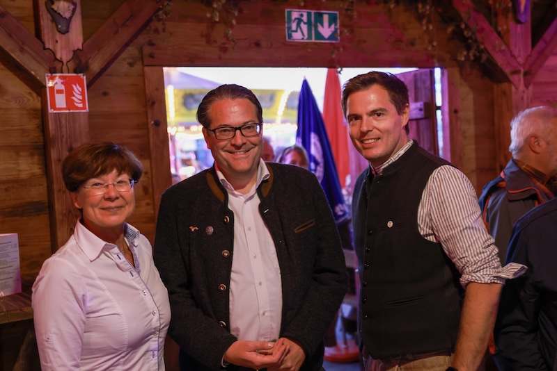 Haags Bürgermeisterin Sissi Schätz und Festwirt Manuel Scheyerl (rechts) begrüßten gestern Wasserburgs Bürgermeisterkandidaten Bastian Wernthaler auf dem Herbstfest. Wernthaler informierte sich bei einem Rundgang über die Organisation eines solchen Feste.
