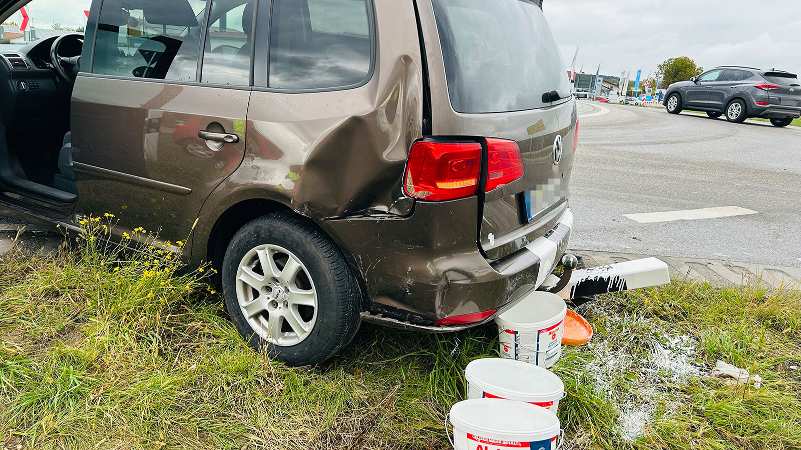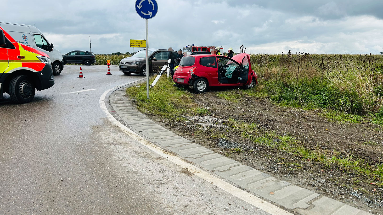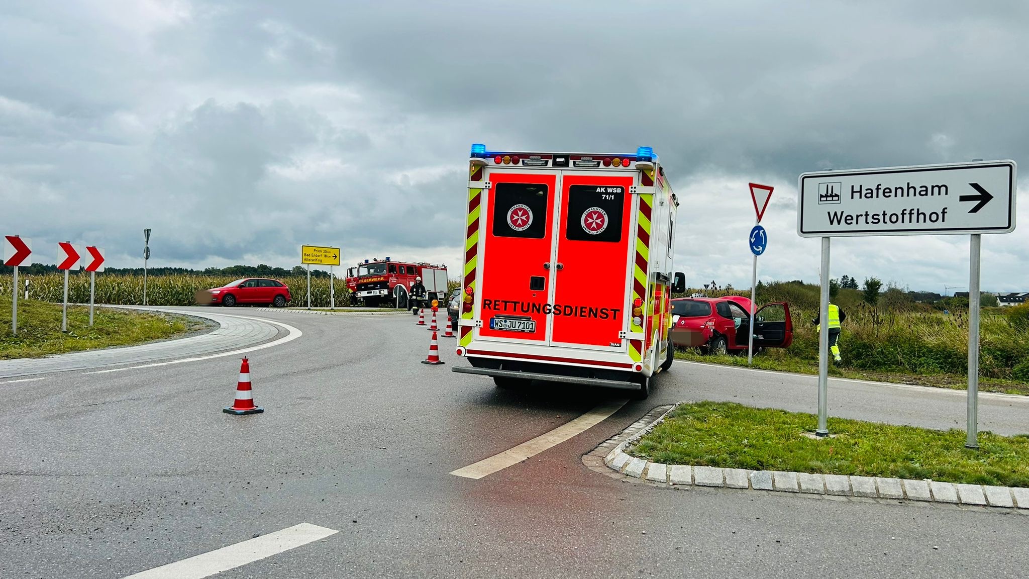 Feuerwehr Aham alarmiert - Zwei Pkw an Kreisverkehr verunglückt