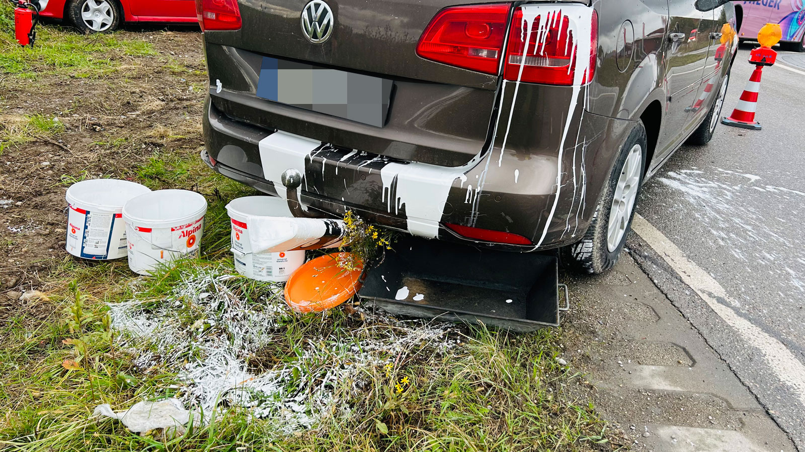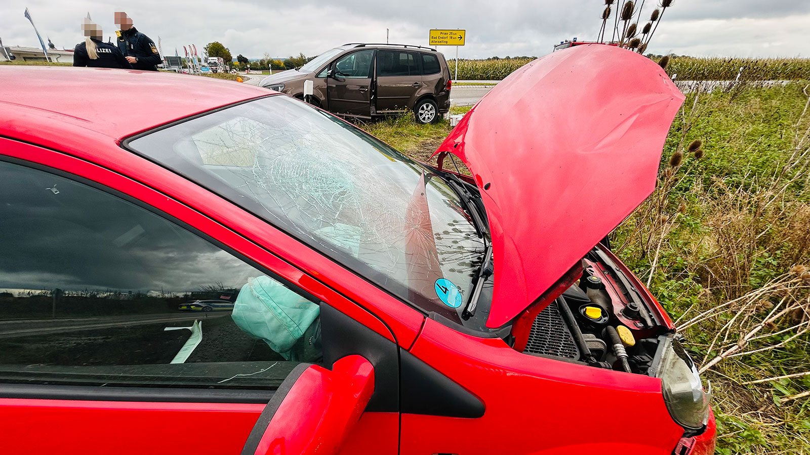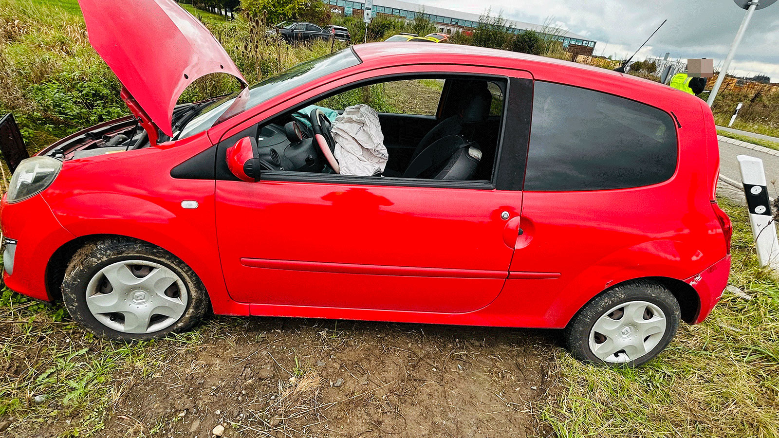 Feuerwehr Aham alarmiert - Zwei Pkw an Kreisverkehr verunglückt