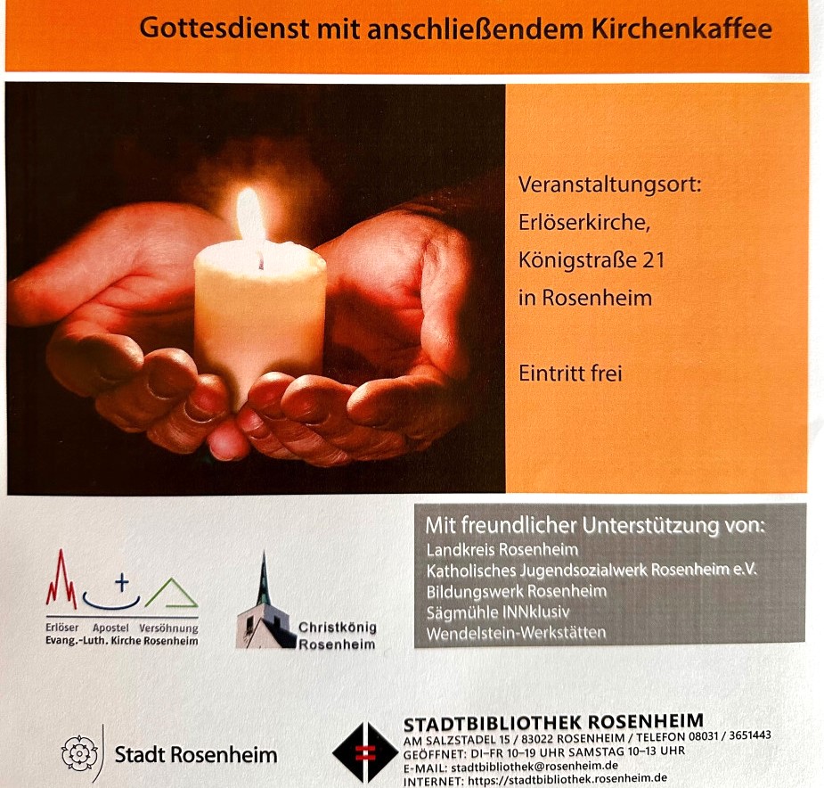 Passend zum Gottesdienst bietet die Stadtbibliothek Rosenheim zudem einen Büchertisch mit Literatur in leichter Sprache an.