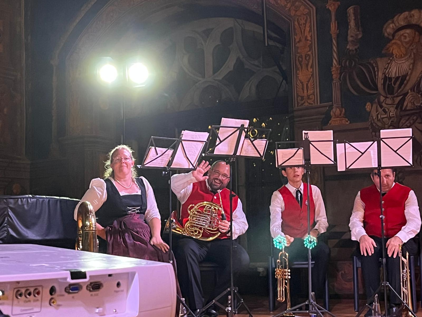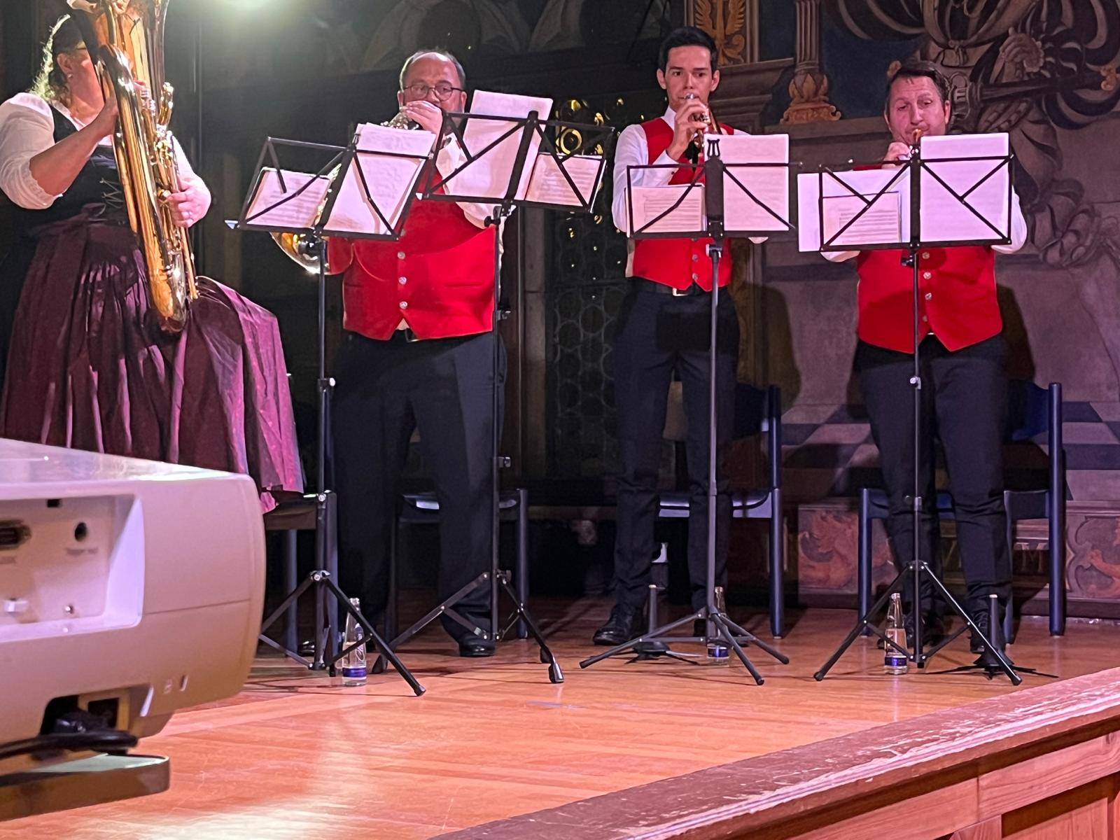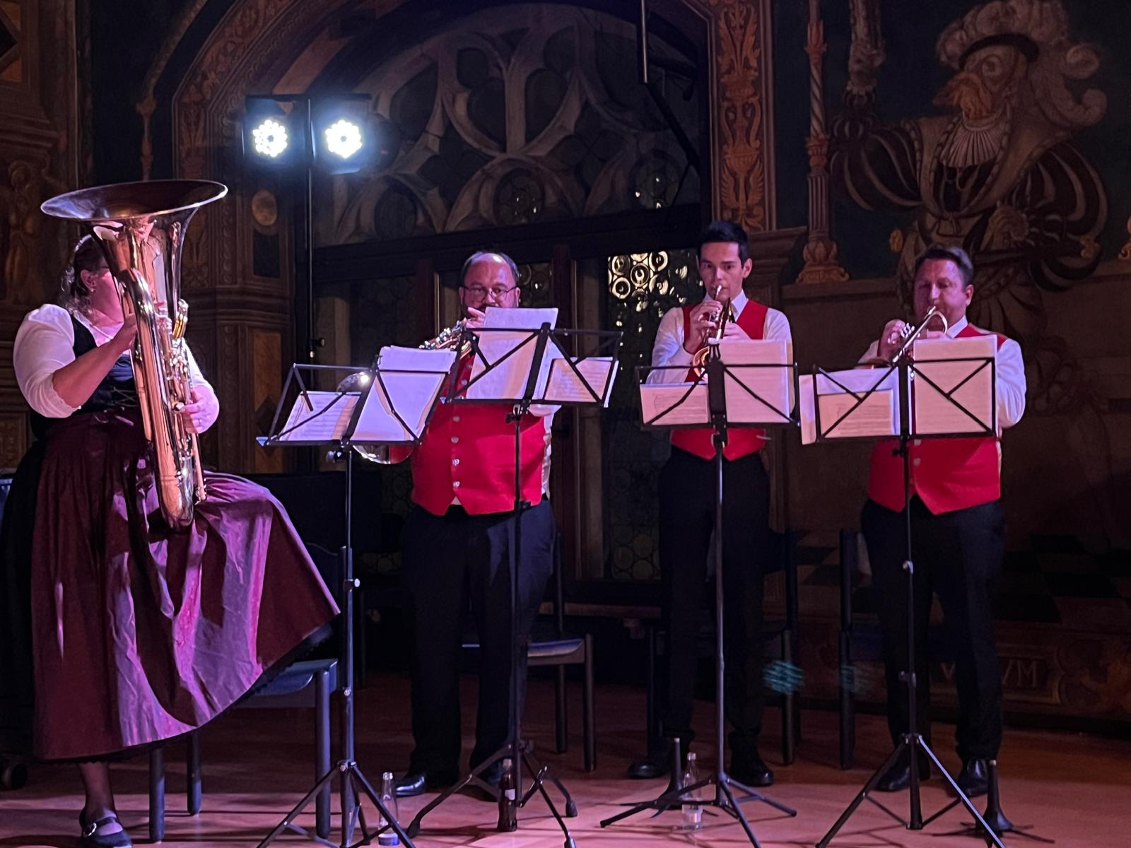 Eine Abordnung der Stadtkapelle Wasserburg, bestehend aus vier Blechbläsern, eröffnete die Veranstaltung mit einem zünftigen Musikstück und versetzte die Anwesenden im Rathaussaal in die erwünschte Stimmung.
