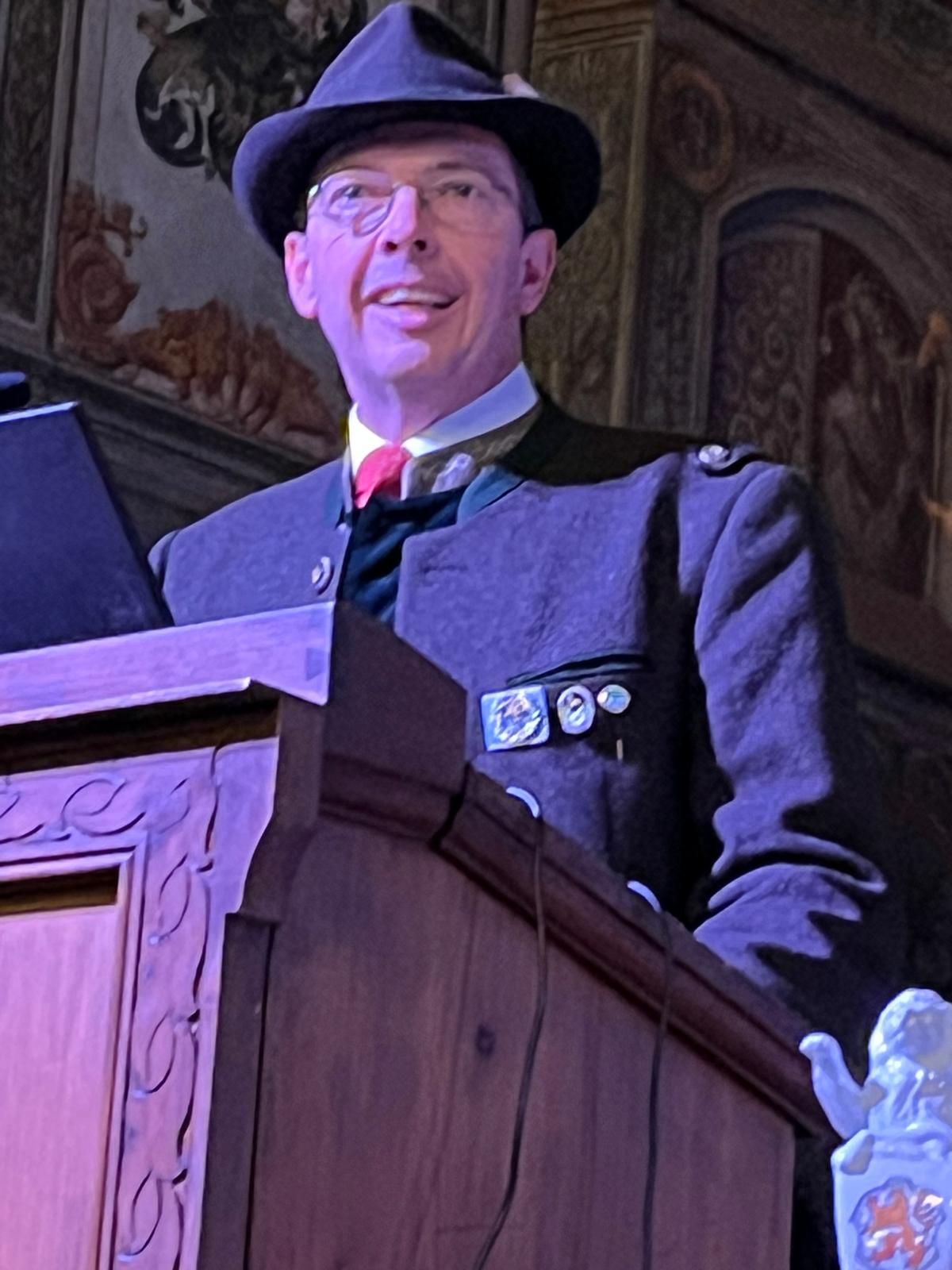 Der Erste Bürgermeister der Stadt Wasserburg, Michael Kölbl, würdigte in seinem Grußwort zunächst den „tollen Blick“ in einen derart gut gefüllten Saal. Er bedankte sich auch bei der Abordnung der Stadtkapelle und fragte dann, warum zu solch einer Veranstaltung so viele kämen. Da sei natürlich zunächst einmal der Wunsch, zahlreiche Erfolge zu feiern und es sei auch eine große Anerkennung fürs Ehrenamt, denn ohne umfassende ehrenamtliche Betätigung seien solche Erfolge nicht möglich.