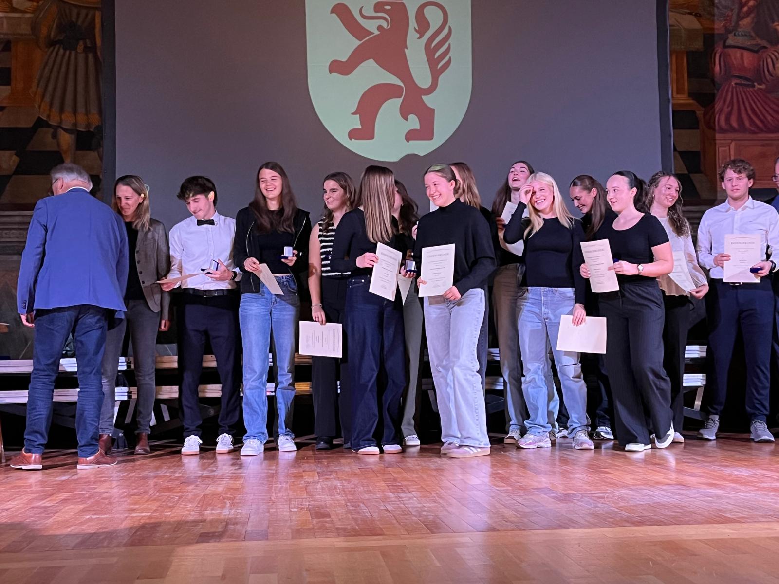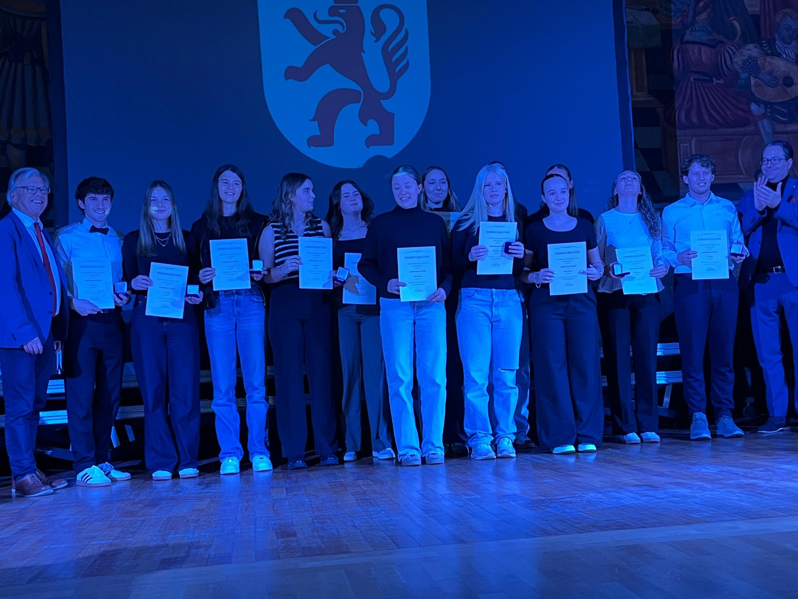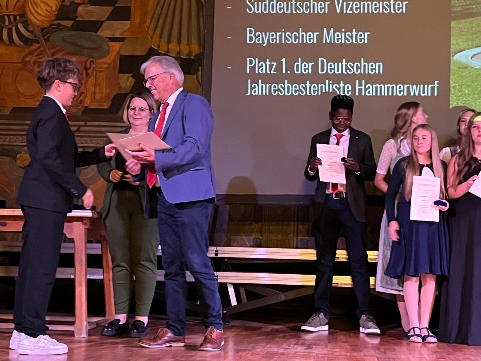 Heute sei nun der Moment gekommen, diese Erfolge zu feiern. Und darum freue er sich, dass die Stadt Wasserburg in diesem Jahr insgesamt 99 Ehrenurkunden im Rahmen des Ehrenabends verleihen kann, und zwar 23 Ehrenurkunden in Gold, 43 in Silber und 33 in Bronze. Die Ehrenurkunde in Gold werde nur verliehen an Sportlerinnen und Sportler, die bei Deutschen Meisterschaften einen ersten, zweiten oder dritten Platz erreicht hätten. Und dass das in Wasserburg in den vergangenen 12 Monaten insgesamt 23 Mal habe erzielt werden können, das sei schon etwas Besonderes.