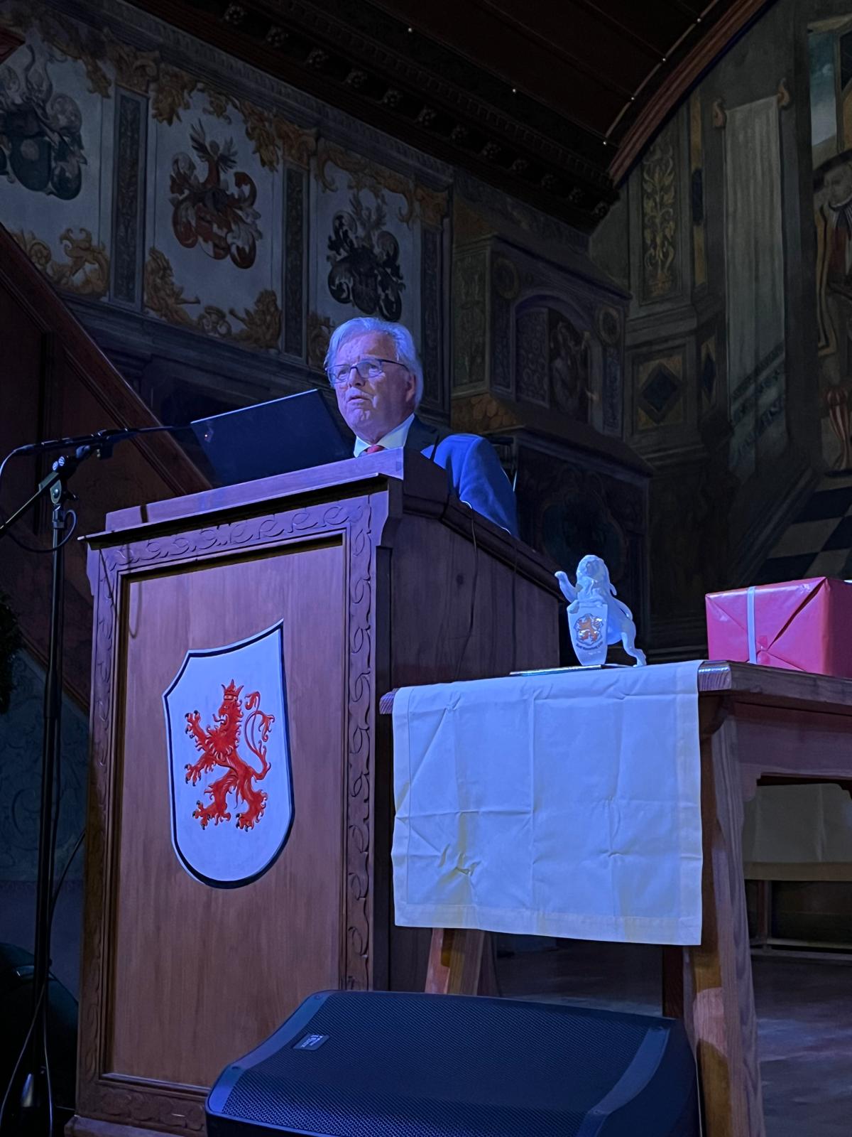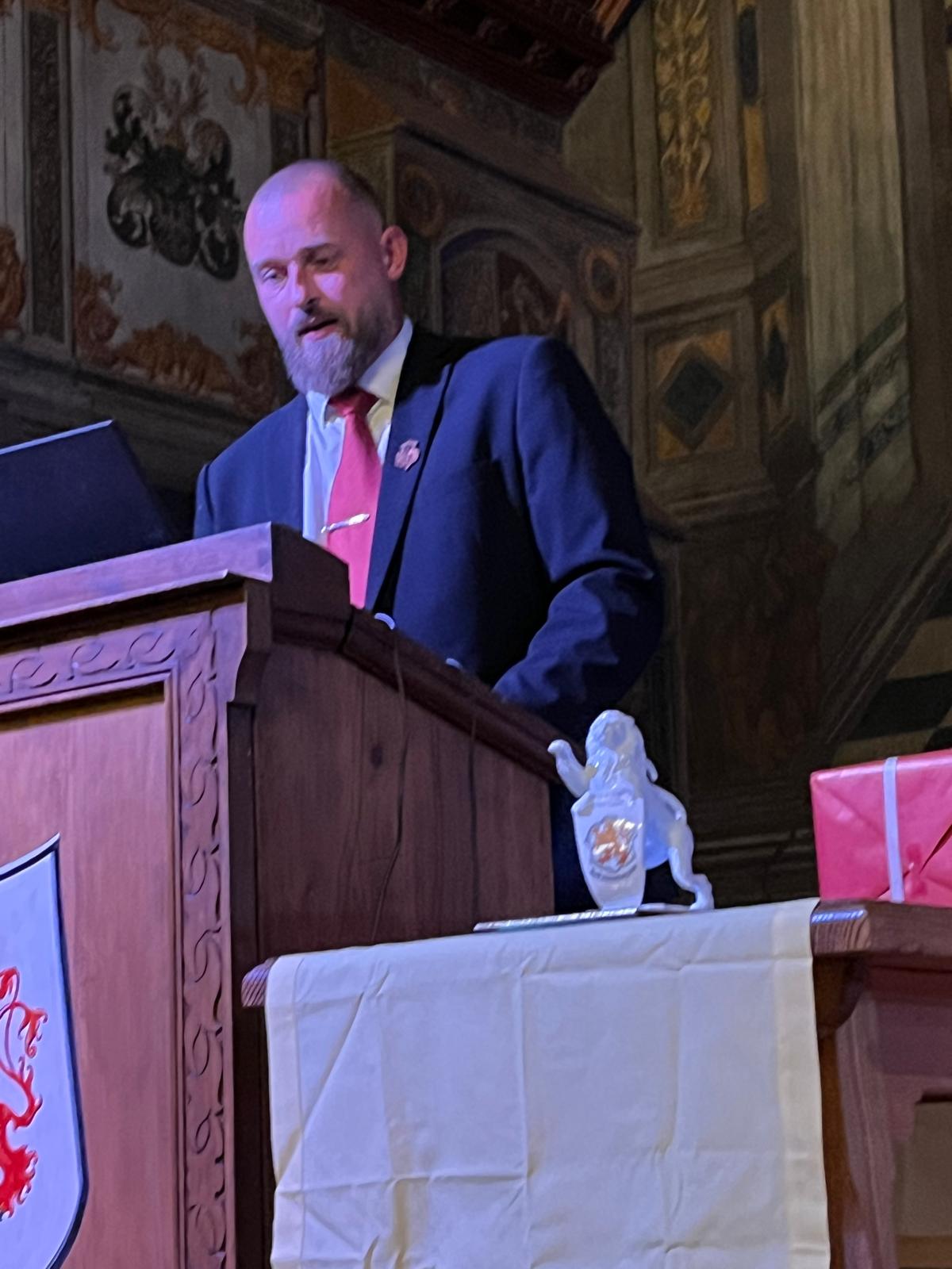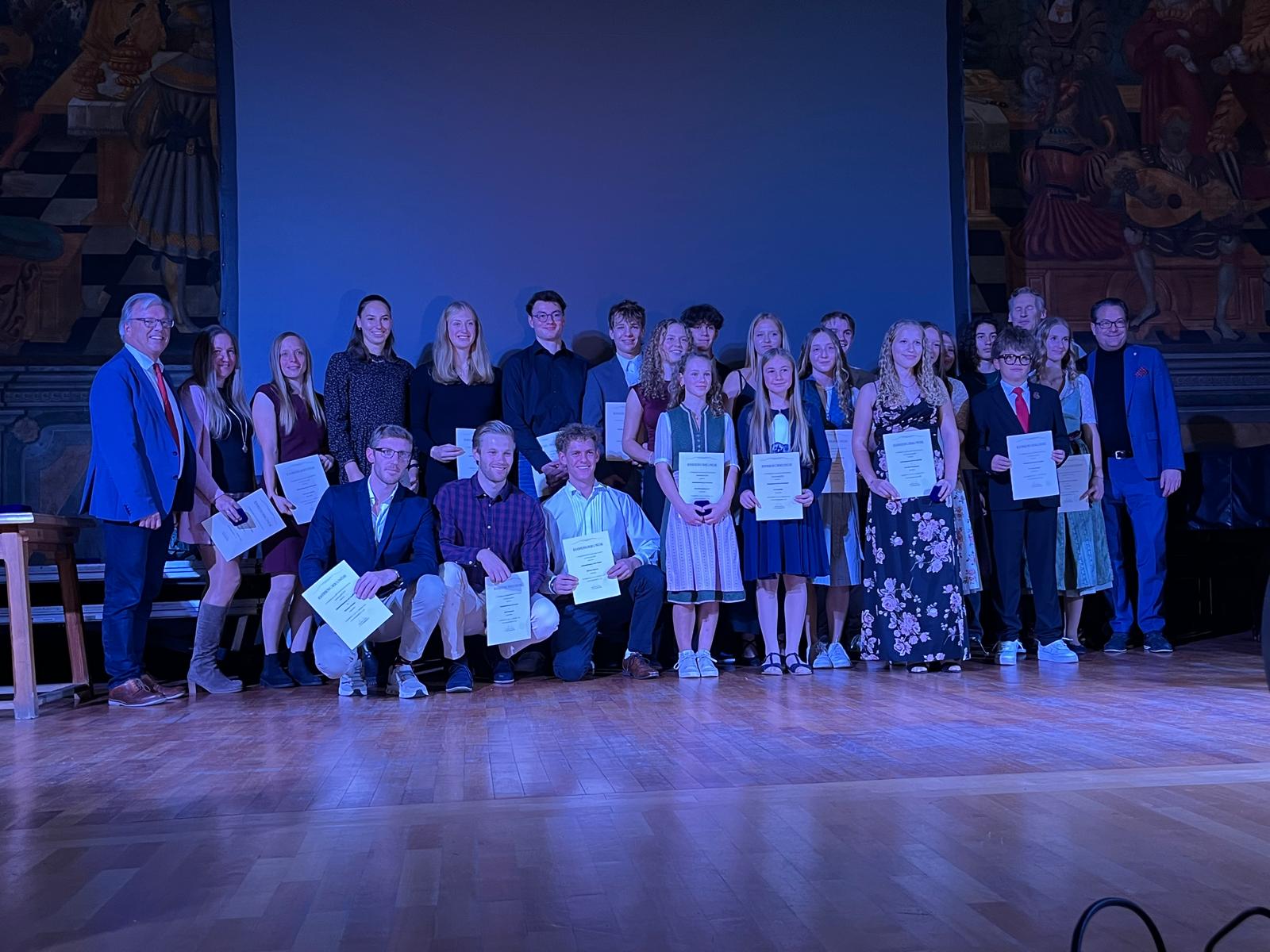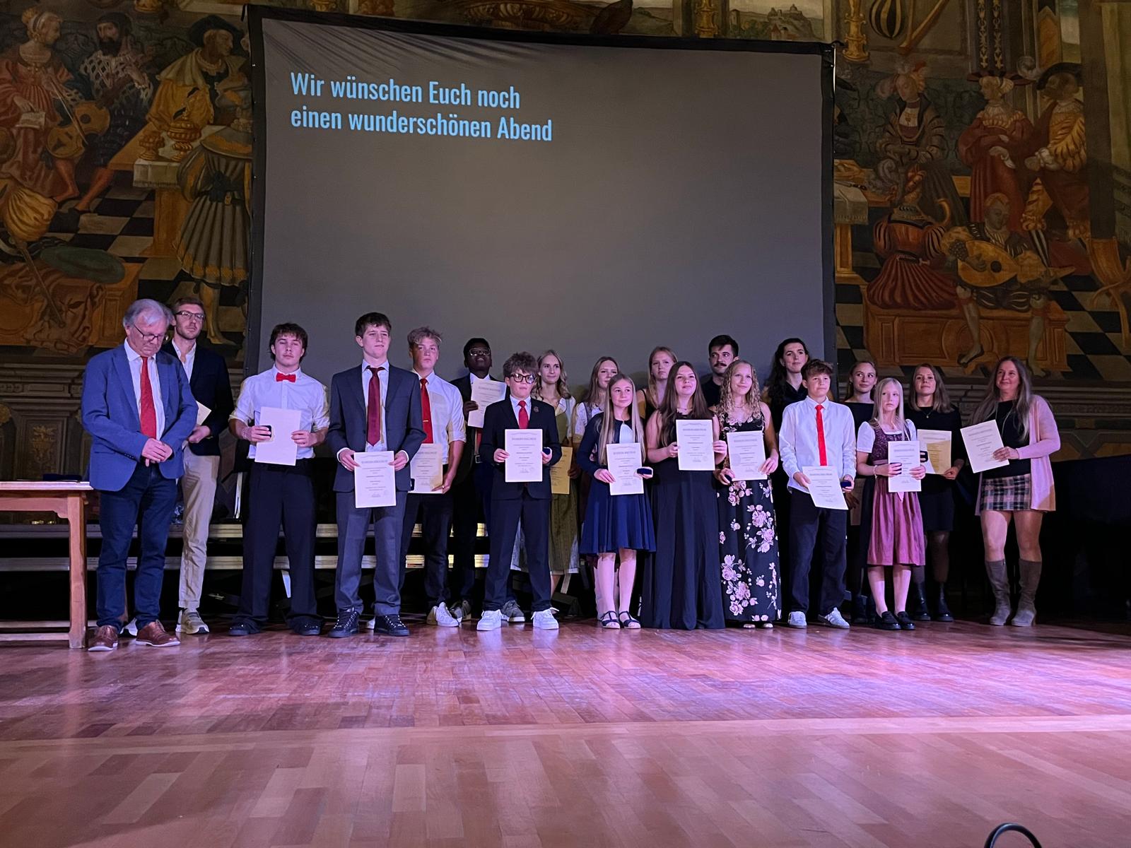 Heute sei nun der Moment gekommen, diese Erfolge zu feiern. Und darum freue er sich, dass die Stadt Wasserburg in diesem Jahr insgesamt 99 Ehrenurkunden im Rahmen des Ehrenabends verleihen kann, und zwar 23 Ehrenurkunden in Gold, 43 in Silber und 33 in Bronze. Die Ehrenurkunde in Gold werde nur verliehen an Sportlerinnen und Sportler, die bei Deutschen Meisterschaften einen ersten, zweiten oder dritten Platz erreicht hätten. Und dass das in Wasserburg in den vergangenen 12 Monaten insgesamt 23 Mal habe erzielt werden können, das sei schon etwas Besonderes.
