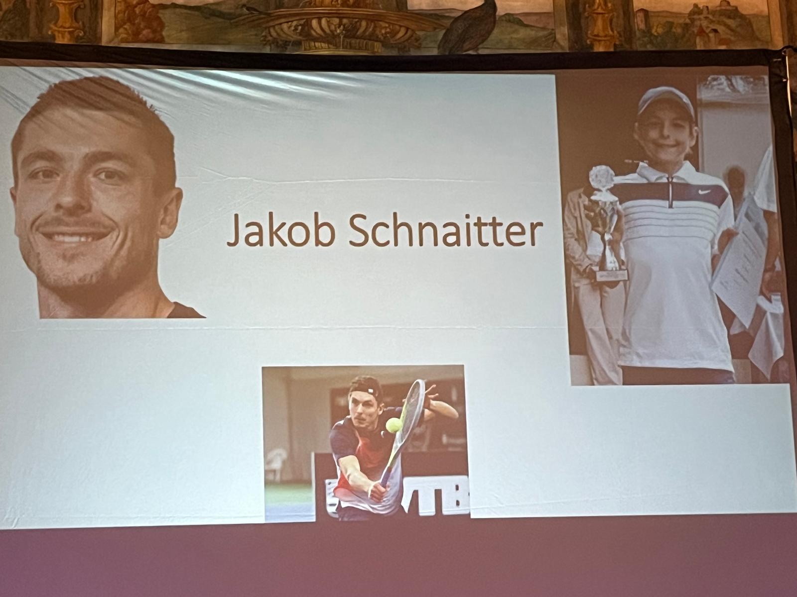 Jakob Schnaitter konnte nicht nach Wasserburg kommen und seine Ehrenurkunde entgegennehmen, weil er sich zur Zeit in Shanghai aufhält, wo er bei den Shanghai-Masters im Doppel bis ins Viertelfinale vorgestoßen sei. Insgesamt könne er auf ein sehr erfolgreiches Jahr zurückblicken, wo er auch an Grand-Slam-Turnieren teilgenommen habe und bei den Australian Open auch recht erfolgreich gewesen sei.