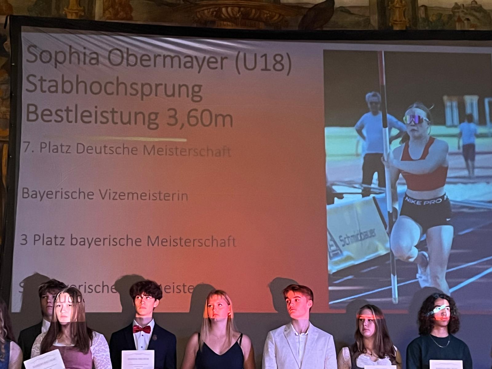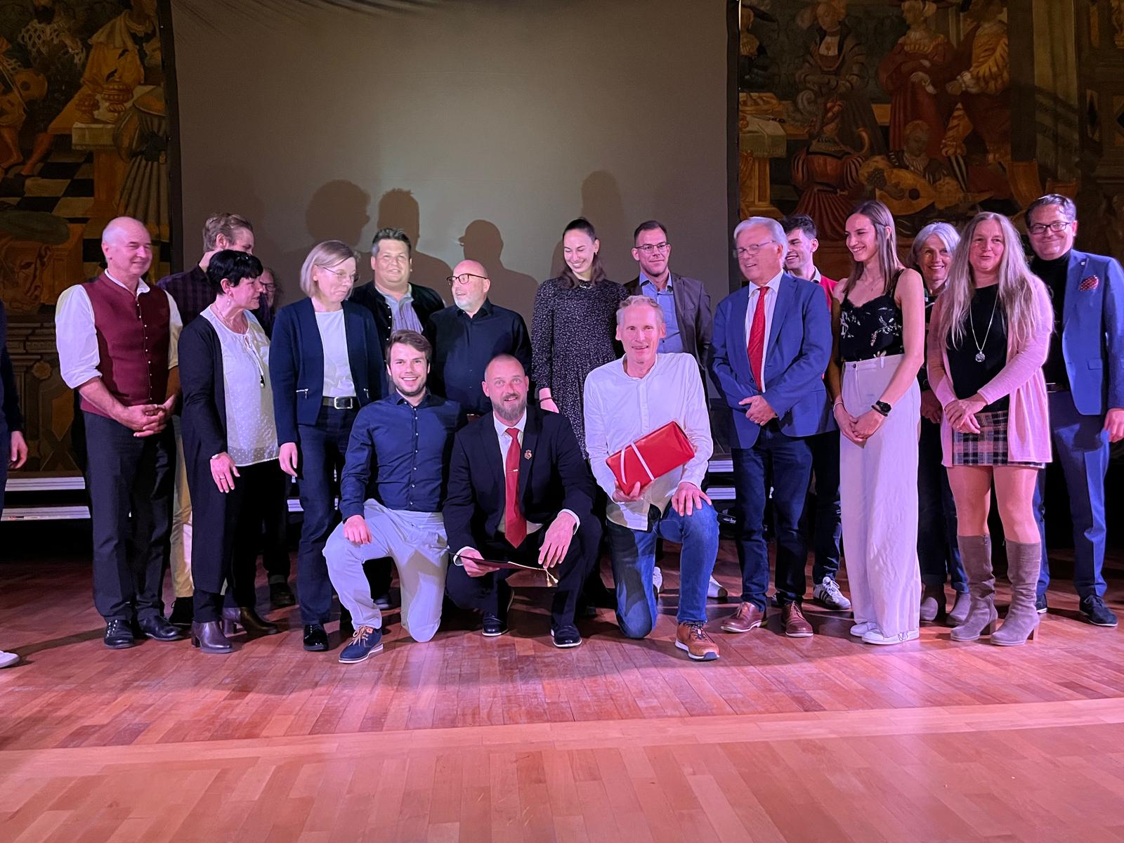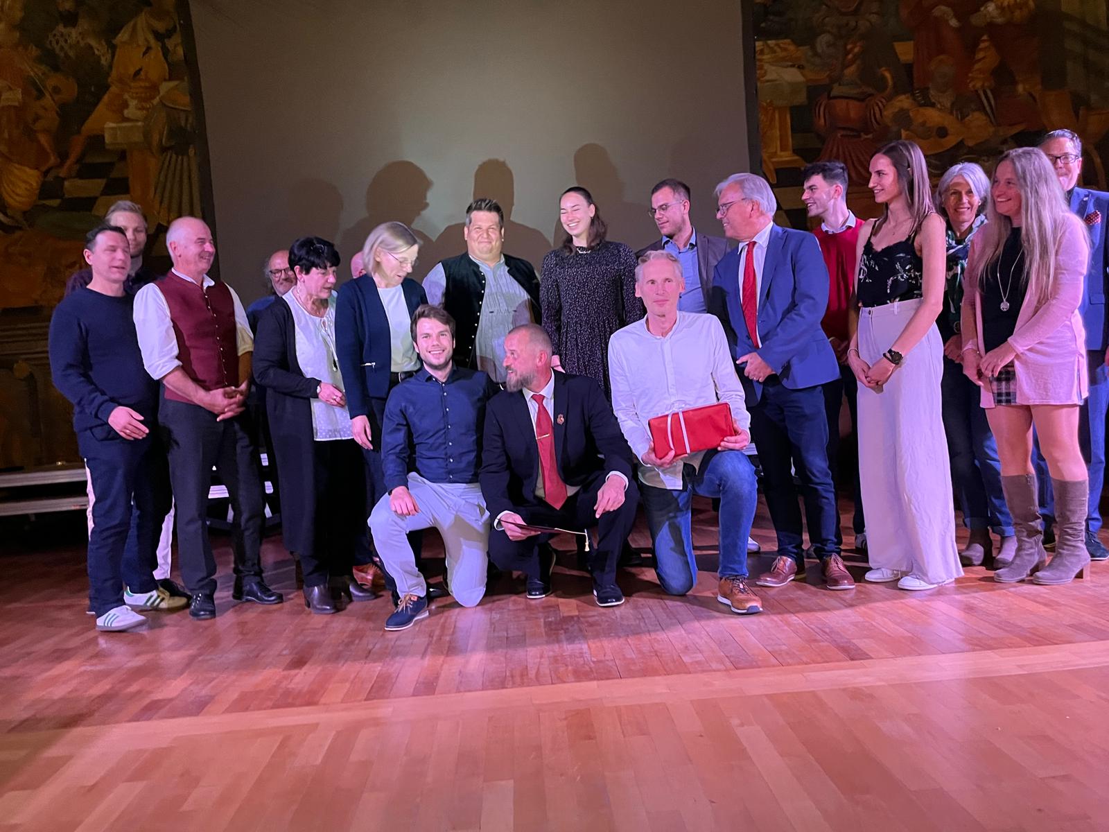 Und schließlich verlieh Bürgermeister Michael Kölbl den Sportehrenpreis der Stadt Wasserburg an das Team „Altstadtspringen“. Es sei dies eine sehr große Gruppe und so wurden die 142 Personen, die das Altstadtspringen organisiert hätten, auf die Bühne gebeten, um den Ehrenpreis entgegenzunehmen. Die Idee sei 2017 bei einer Veranstaltung in der Turnhalle des Luitpold-Gymnasiums geboren worden und habe heute schon einen festen Platz im Veranstaltungskalender der Stadt Wasserburg erworben. Kölbl betonte auch, dass es ihm eine Ehre sei, diese Laudatio zu halten. Insgesamt 18 Teams hätten sich um die Organisation des Altstadtspringens gekümmert. Das Kampfgericht sei wichtig, aber auch die Nachtwache, damit man keine unliebsamen Überraschungen erleben muss, ebenso das Aufbauteam, das Nachfüllteam und eben auch die Teams, die sich um das leibliche Wohl der Besucher sorgten. Stabhochsprung so hautnah erleben zu dürfen, sei schon etwas Besonderes, meinte Kölbl abschließend. Und als dann beim Schlussapplaus der gesamte Saal sich zu „standing ovations“ erhob, da konnte Willi Atzenberger nicht mehr an sich halten und rief in den Saal: „Ihr seid’s der Wahnsinn!“