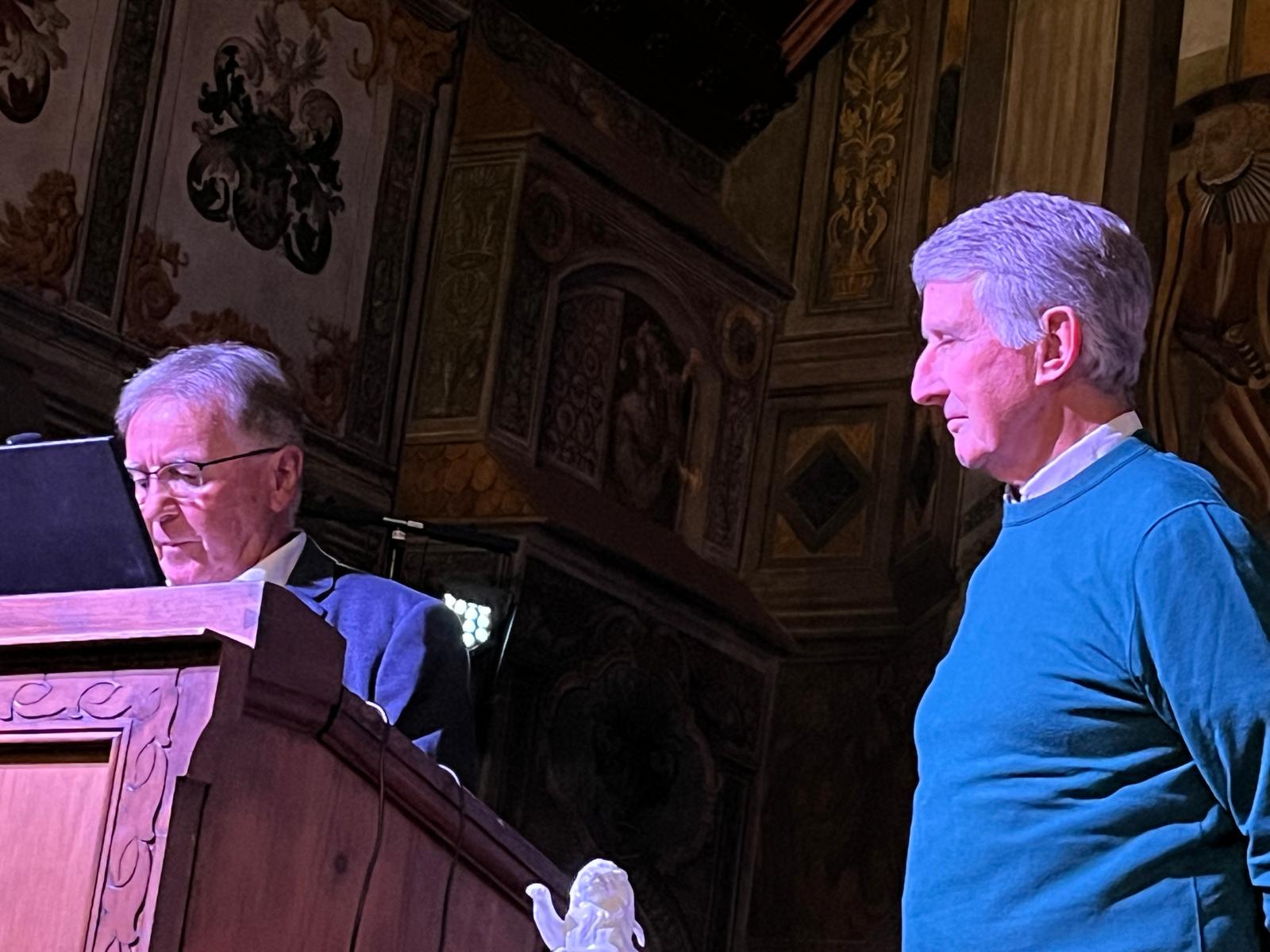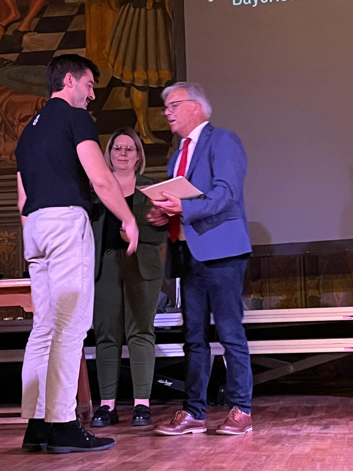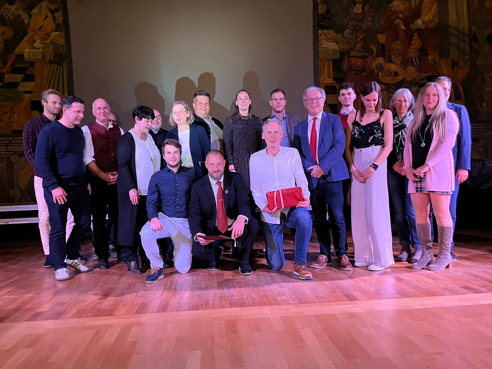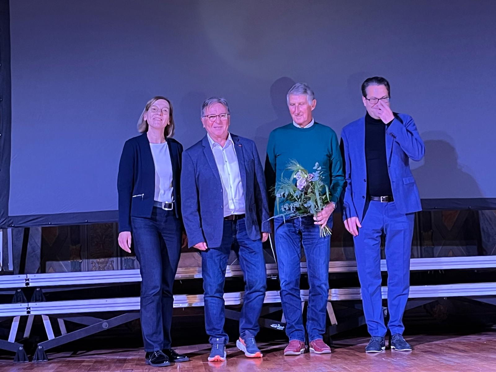 Und schließlich verlieh Bürgermeister Michael Kölbl den Sportehrenpreis der Stadt Wasserburg an das Team „Altstadtspringen“. Es sei dies eine sehr große Gruppe und so wurden die 142 Personen, die das Altstadtspringen organisiert hätten, auf die Bühne gebeten, um den Ehrenpreis entgegenzunehmen. Die Idee sei 2017 bei einer Veranstaltung in der Turnhalle des Luitpold-Gymnasiums geboren worden und habe heute schon einen festen Platz im Veranstaltungskalender der Stadt Wasserburg erworben. Kölbl betonte auch, dass es ihm eine Ehre sei, diese Laudatio zu halten. Insgesamt 18 Teams hätten sich um die Organisation des Altstadtspringens gekümmert. Das Kampfgericht sei wichtig, aber auch die Nachtwache, damit man keine unliebsamen Überraschungen erleben muss, ebenso das Aufbauteam, das Nachfüllteam und eben auch die Teams, die sich um das leibliche Wohl der Besucher sorgten. Stabhochsprung so hautnah erleben zu dürfen, sei schon etwas Besonderes, meinte Kölbl abschließend. Und als dann beim Schlussapplaus der gesamte Saal sich zu „standing ovations“ erhob, da konnte Willi Atzenberger nicht mehr an sich halten und rief in den Saal: „Ihr seid’s der Wahnsinn!“
